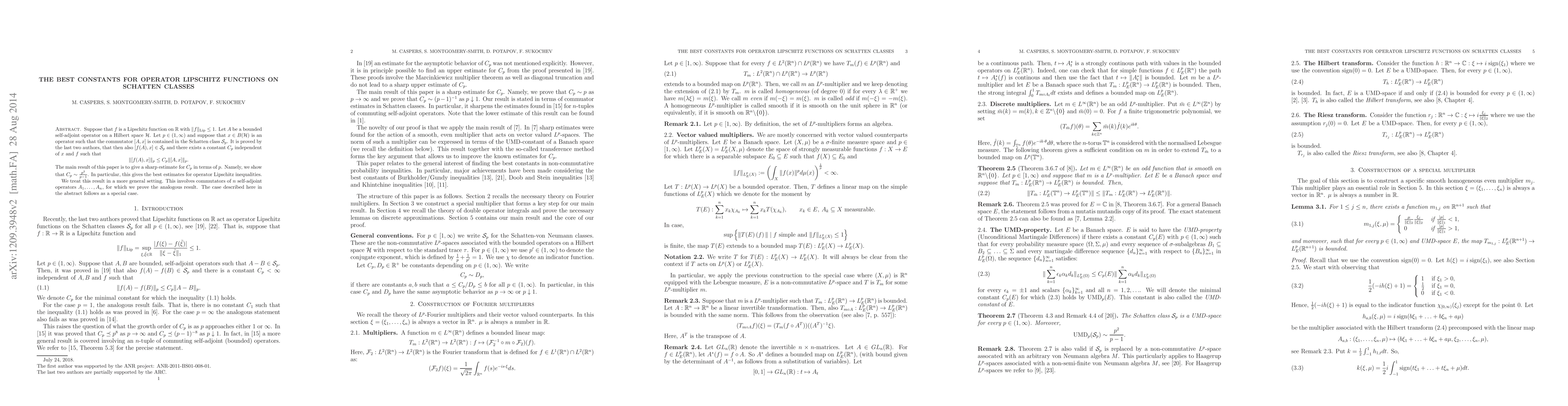 The paper provides a sharp estimate for operator Lipschitz constants in terms of p, showing that C_p ~ p^2/(p-1) for bounded self-adjoint operators and Lipschitz functions on real numbers.