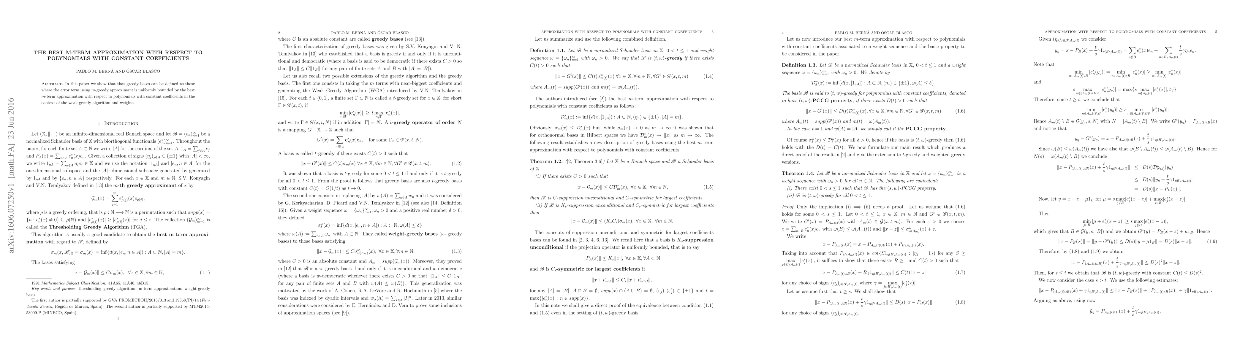 Summary: This paper demonstrates that greedy bases can be defined by a uniform error bound using the $m$-greedy approximant, which is the best $m$-term approximation for polynomials with constant coefficients, within the framework of the weak greedy algorithm and associated weights.
