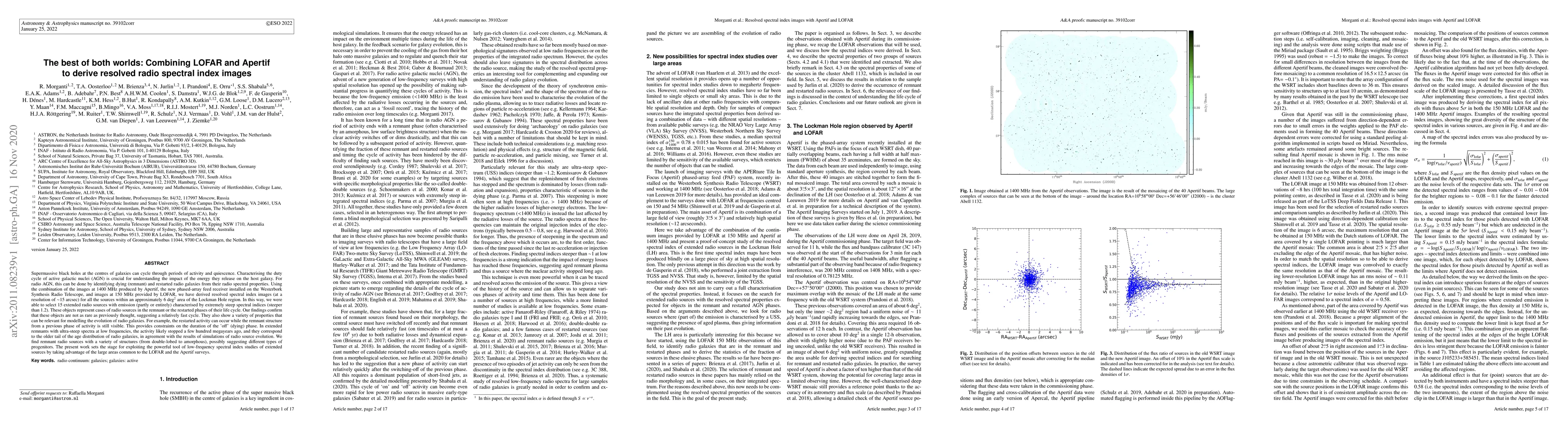 The paper presents a novel method of combining LOFAR and Apertif data to derive resolved spectral index images, enabling the identification of remnant and restarted radio galaxies based on their spectral properties.