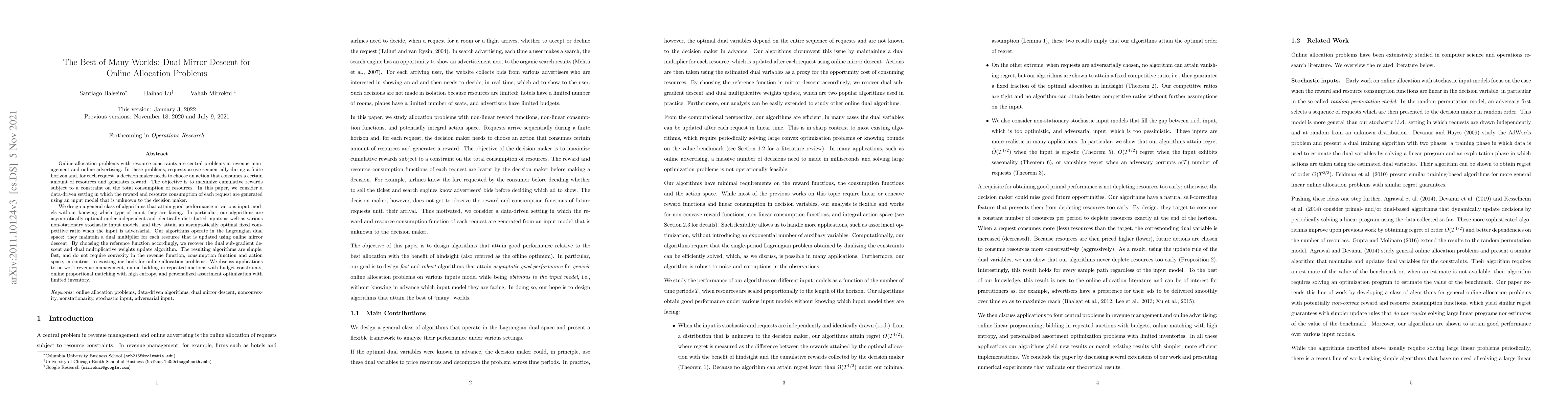 Vahab Mirrokni, Santiago R. Balseiro, Balasubramanian Sivan et al.
