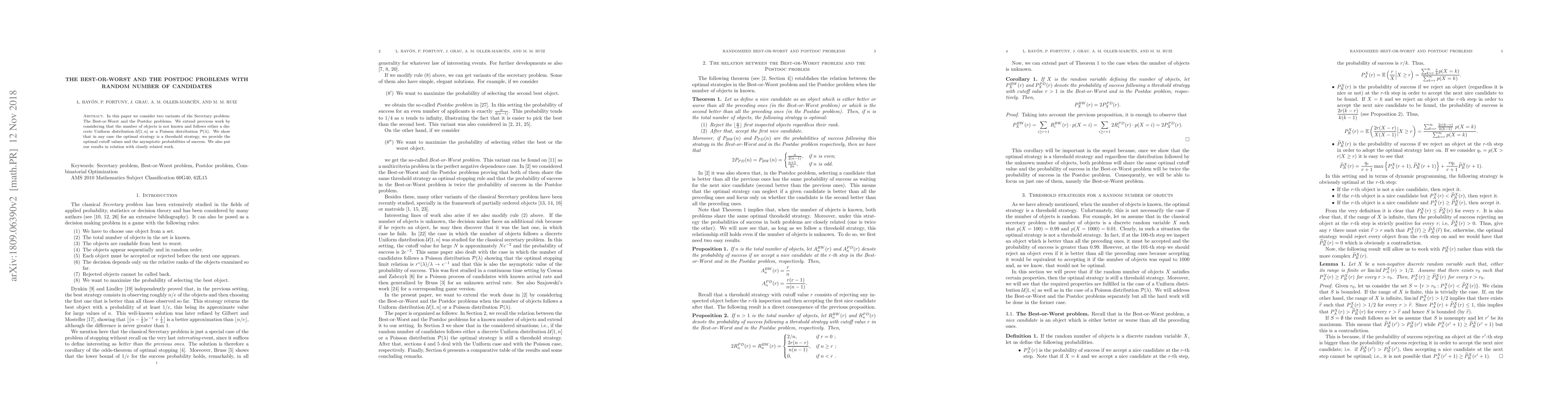 In this paper we consider two variants of the Secretary problem: The Best-or-Worst and the Postdoc problems. We extend previous work by considering that the number of objects is not known and follows either a discrete Uniform distribution $\mathcal{U}[1,n]$ or a Poisson distribution $\mathcal{P}(\lambda)$. We show that in any case the optimal strategy is a threshold strategy, we provide the optimal cutoff values and the asymptotic probabilities of success. We also put our results in relation with closely related work.