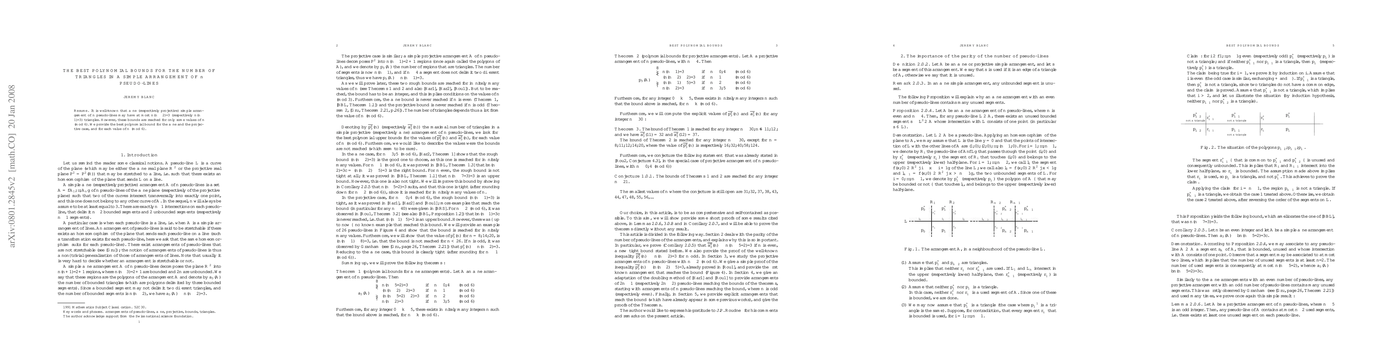 It is well-known that affine (respectively projective) simple arrangements of n pseudo-lines may have at most n(n-2)/3 (respectively n(n-1)/3) triangles. However, these bounds are reached for only some values of n (mod 6). We provide the best polynomial bound for the affine and the projective case, and for each value of n (mod 6).