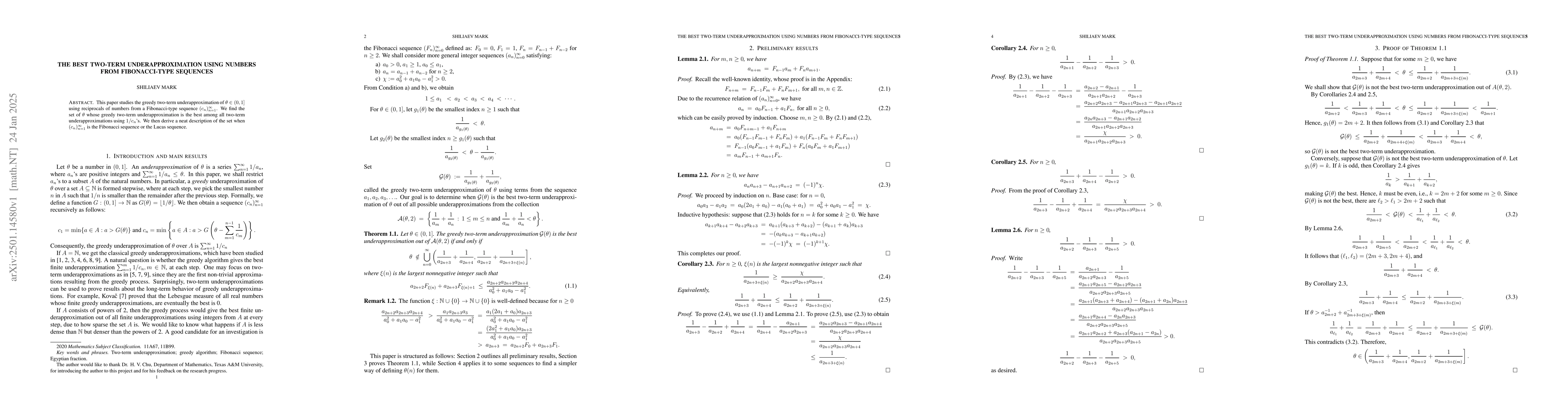 This paper studies the greedy two-term underapproximation of $\theta\in (0,1]$ using reciprocals of numbers from a Fibonacci-type sequence $(c_n)_{n=1}^\infty$. We find the set of $\theta$ whose greedy two-term underapproximation is the best among all two-term underapproximations using $1/c_n$'s. We then derive a neat description of the set when $(c_n)_{n=1}^\infty$ is the Fibonacci sequence or the Lucas sequence.
