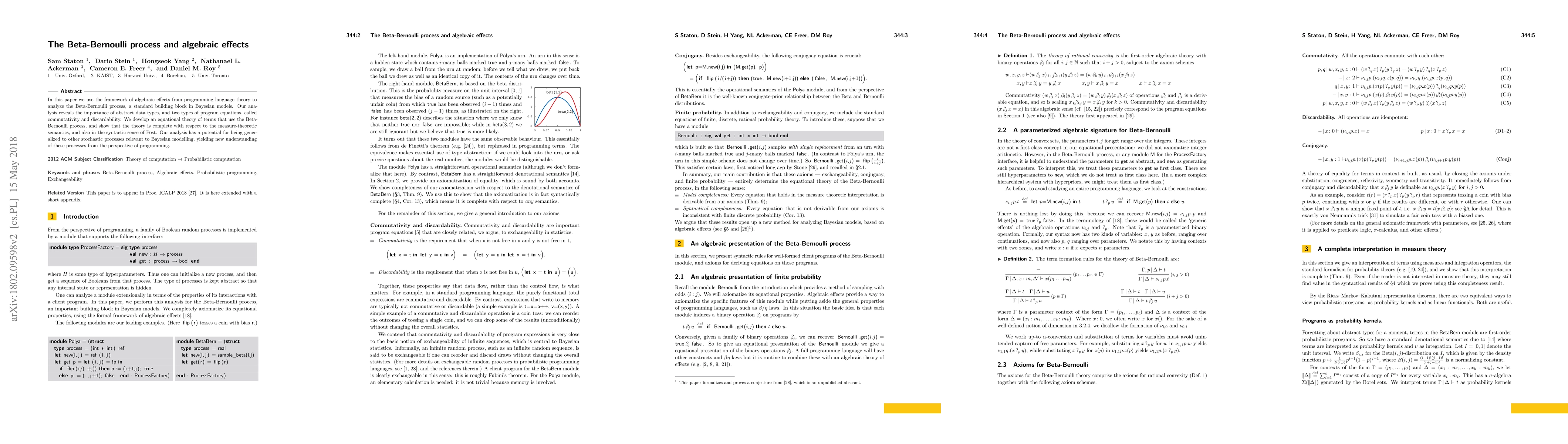 This paper uses algebraic effects to analyze the Beta-Bernoulli process in Bayesian models, revealing its importance and developing an equational theory of terms that is complete with respect to measure-theoretic semantics.