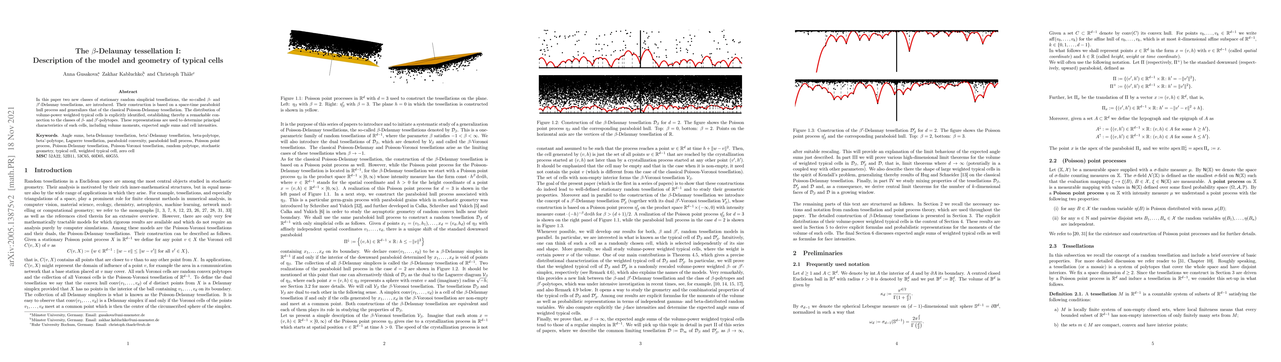 This paper introduces $\beta$- and $\beta'$-Delaunay tessellations, generalizing the classical Poisson-Delaunay tessellation via a space-time paraboloid hull process. It identifies the distribution of volume-power weighted typical cells, establishing connections to $\beta$- and $\beta'$-polytopes and determining key characteristics like volume moments and expected angle sums.