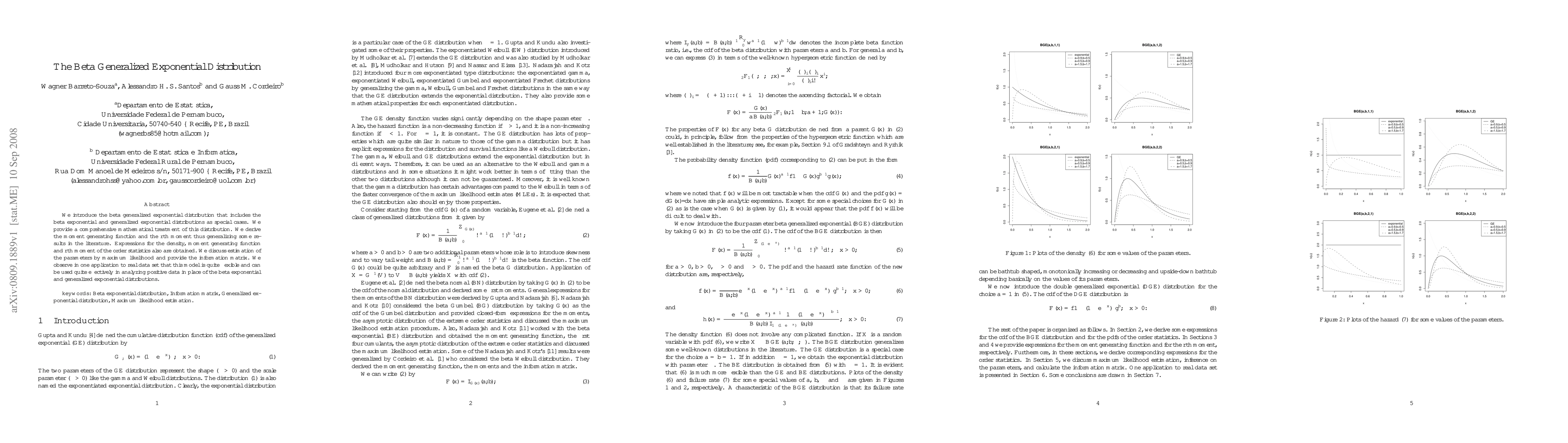 The beta generalized exponential distribution is introduced, encompassing the beta exponential and generalized exponential distributions as special cases. The paper provides a detailed mathematical treatment, deriving the moment generating function, $r$th moment, and expressions for order statistics, alongside parameter estimation via maximum likelihood.
