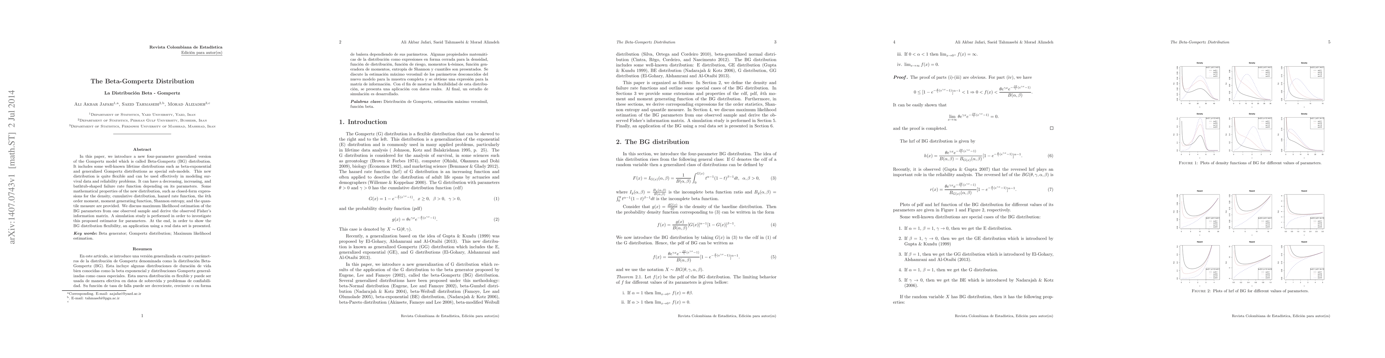 This paper introduces the Beta-Gompertz distribution, a flexible four-parameter generalization of the Gompertz model, which can model various failure rate shapes and includes special sub-models like the beta-exponential and generalized Gompertz distributions. The paper also discusses maximum likelihood estimation and provides a simulation study to validate the proposed parameter estimator, concluding with an application to real data.