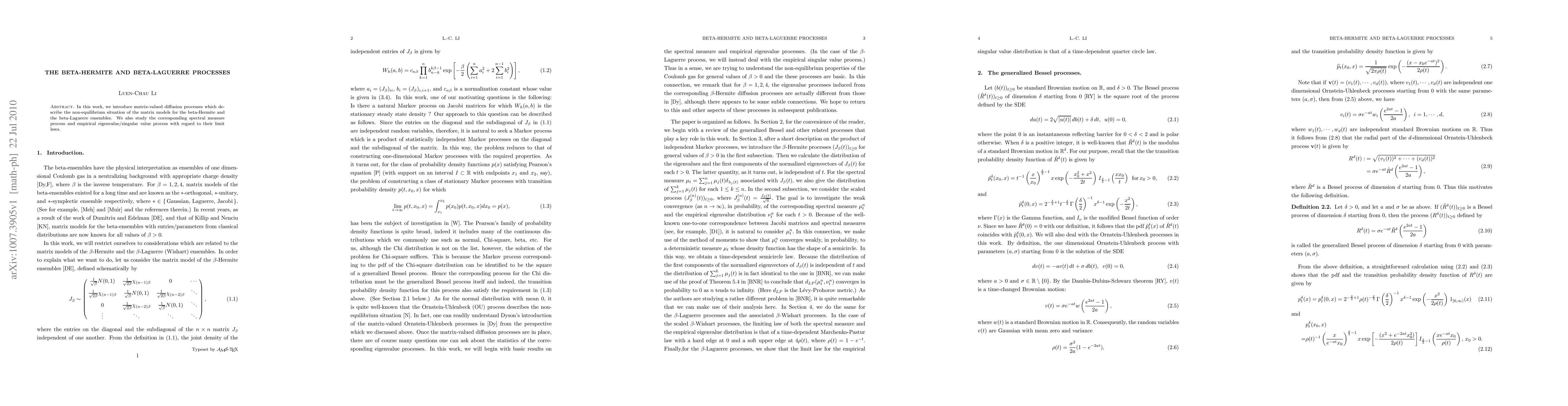 This paper introduces matrix-valued diffusion processes for beta-Hermite and beta-Laguerre ensembles, exploring their spectral measure and empirical/singular value processes to examine their limit laws in non-equilibrium matrix models.
