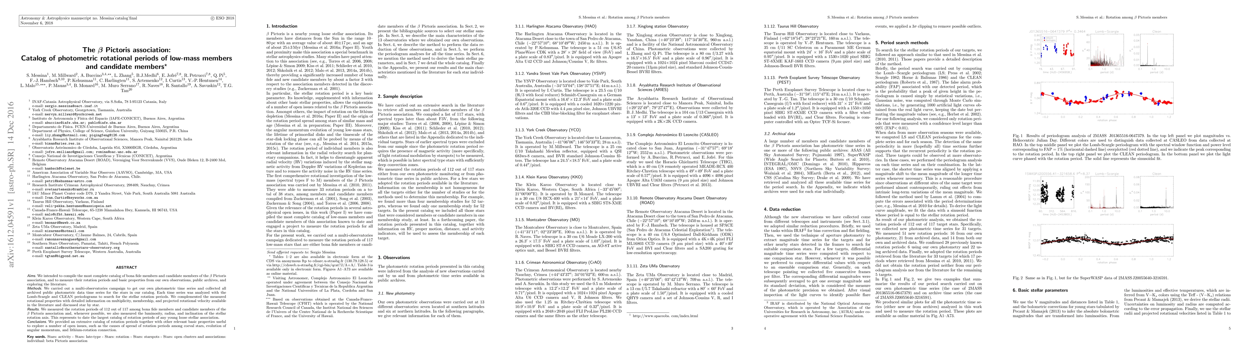 This paper compiles the most comprehensive catalog of rotational periods for bona fide and candidate members of the beta Pictoris association, utilizing multi-observatory photometric data and archival sources. The study measures rotation periods for 112 out of 117 members, providing insights into angular momentum evolution and the relationship between rotation and lithium abundance.