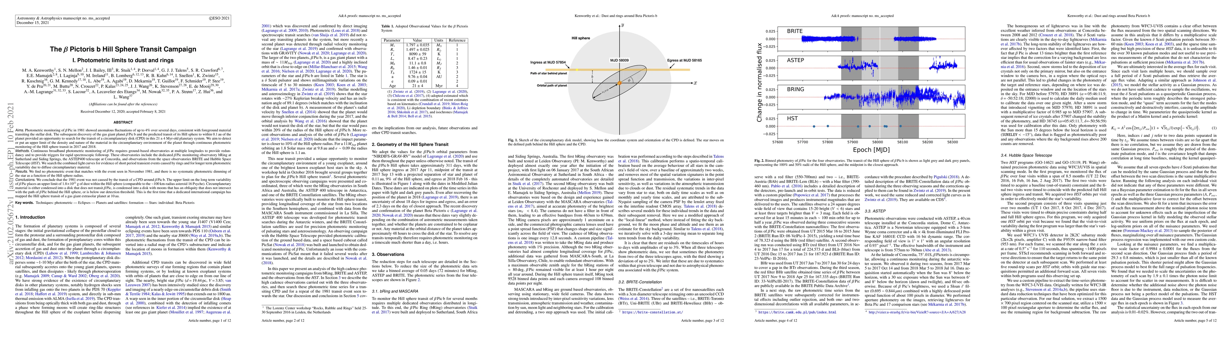 This study monitored Beta Pictoris for transits of its circumplanetary disk during the predicted transit of its Hill sphere, finding no evidence of such an event and setting an upper limit of $1.8\times 10^{22}$ g of dust within the Hill sphere. The campaign utilized multiple observatories to ensure comprehensive coverage.
