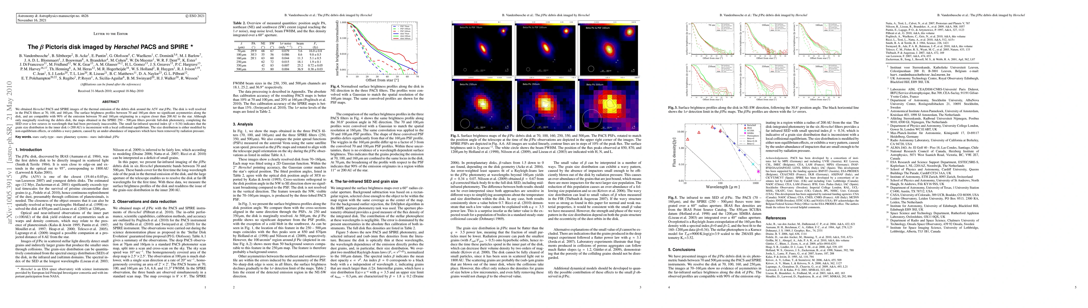 This study uses Herschel PACS and SPIRE to image the thermal emission from the debris disk around β Pictoris, revealing a nearly symmetric disk with most emission originating within 200 AU. The small far-infrared spectral index suggests non-equilibrium grain size distribution, possibly due to non-equilibrium effects or radiation pressure removal of small impactors.