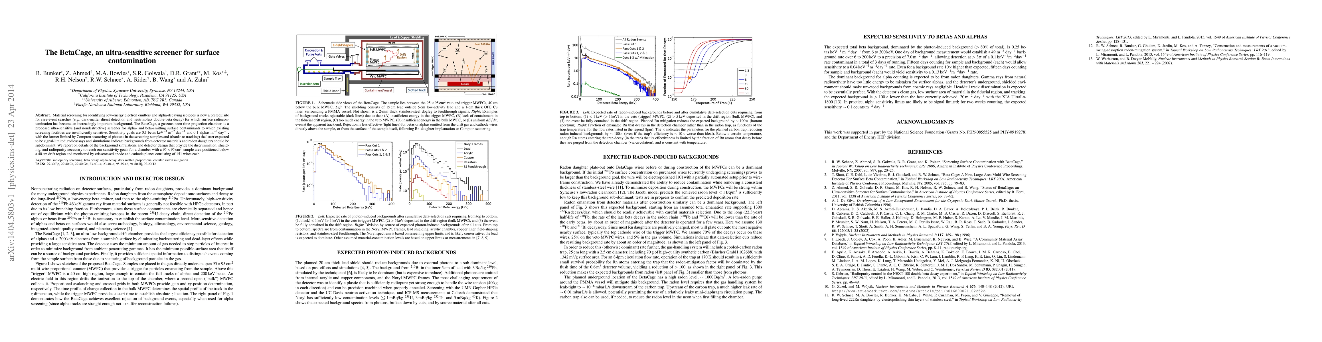 Material screening for identifying low-energy electron emitters and alpha-decaying isotopes is now a prerequisite for rare-event searches (e.g., dark-matter direct detection and neutrinoless double-beta decay) for which surface radiocontamination has become an increasingly important background. The BetaCage, a gaseous neon time-projection chamber, is a proposed ultra-sensitive (and nondestructive) screener for alpha- and beta-emitting surface contaminants to which existing screening facilities are insufficiently sensitive. Sensitivity goals are 0.1 betas per keV-m$^2$-day and 0.1 alphas per m$^2$-day, with the former limited by Compton scattering of photons in the screening samples and (thanks to tracking) the latter expected to be signal-limited; radioassays and simulations indicate backgrounds from detector materials and radon daughters should be subdominant. We report on details of the background simulations and detector design that provide the discrimination, shielding, and radiopurity necessary to reach our sensitivity goals for a chamber with a 95$\times$95 cm$^2$ sample area positioned below a 40 cm drift region and monitored by crisscrossed anode and cathode planes consisting of 151 wires each.