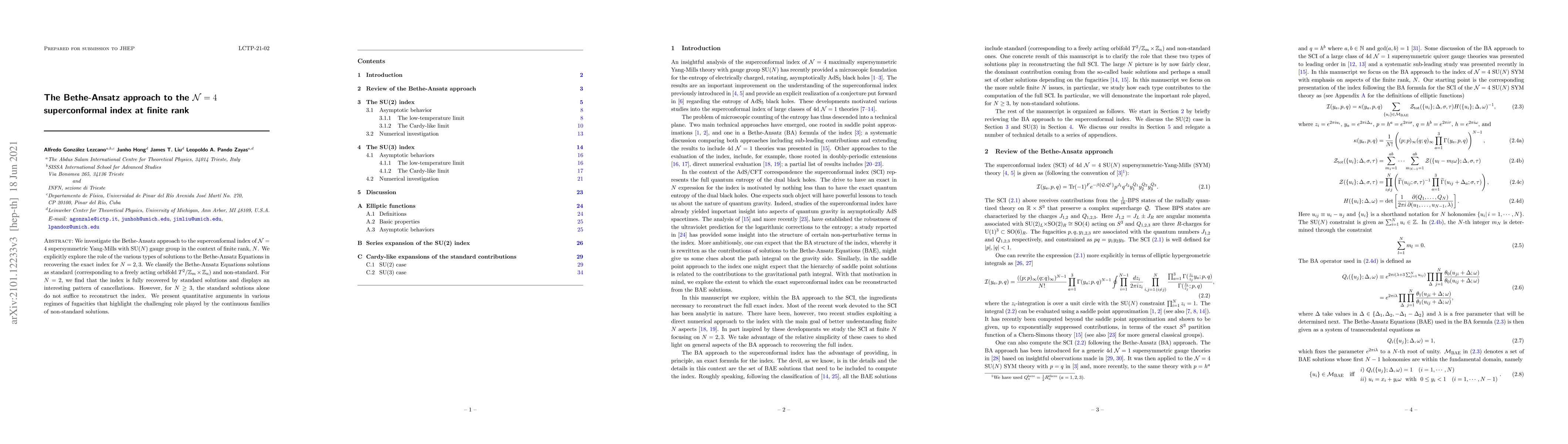 Researchers investigated the Bethe-Ansatz approach to the superconformal index of supersymmetric Yang-Mills theory, finding that for N=2, the index is fully recovered by standard solutions, but for N>=3, non-standard solutions play a crucial role in reconstructing the index.