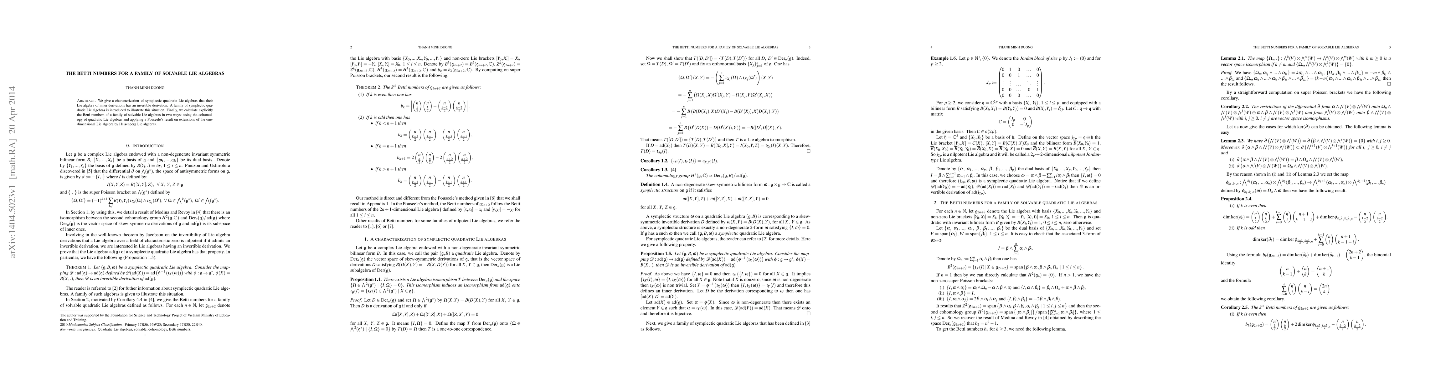 This paper characterizes symplectic quadratic Lie algebras where the Lie algebra of inner derivations has an invertible derivation and introduces a family to exemplify this. It also computes the Betti numbers of a solvable Lie algebra family using both cohomology methods and Pousseele's extension results.