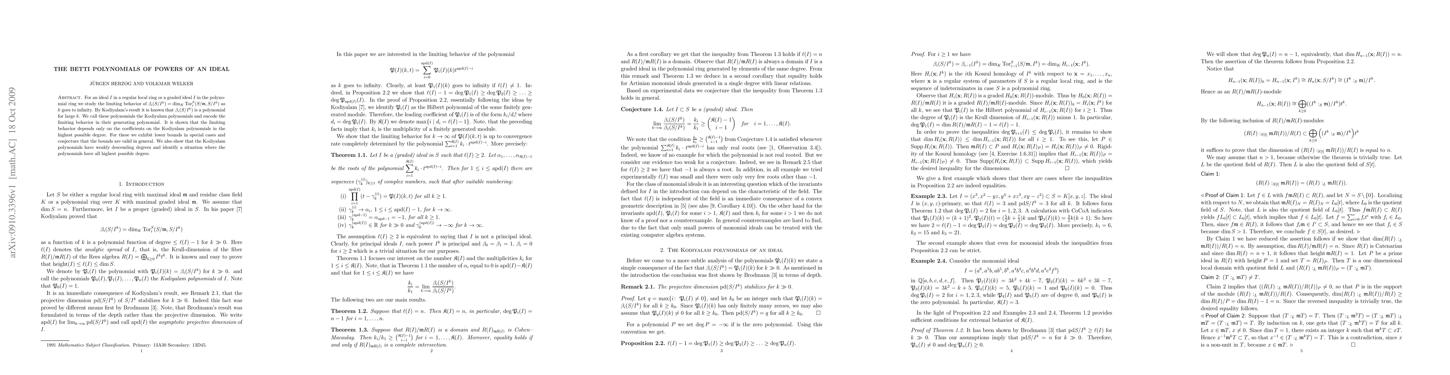 This paper investigates the limiting behavior of Betti numbers for powers of an ideal in a regular local ring or a polynomial ring, defining Kodiyalam polynomials that encode this behavior. It demonstrates that the limiting behavior depends on the highest-degree coefficients of these polynomials and conjectures lower bounds for these coefficients.