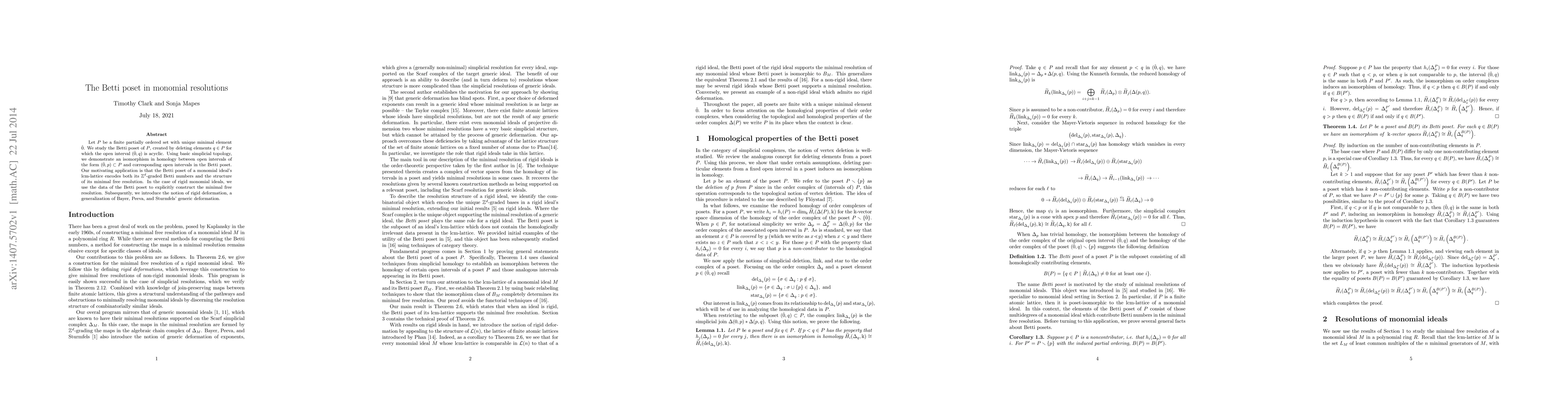 Let $P$ be a finite partially ordered set with unique minimal element $\hat{0}$. We study the Betti poset of $P$, created by deleting elements $q\in P$ for which the open interval $(\hat{0}, q)$ is acyclic. Using basic simplicial topology, we demonstrate an isomorphism in homology between open intervals of the form $(\hat{0},p)\subset P$ and corresponding open intervals in the Betti poset. Our motivating application is that the Betti poset of a monomial ideal's lcm-lattice encodes both its $\mathbb{Z}^{d}$-graded Betti numbers and the structure of its minimal free resolution. In the case of rigid monomial ideals, we use the data of the Betti poset to explicitly construct the minimal free resolution. Subsequently, we introduce the notion of rigid deformation, a generalization of Bayer, Peeva, and Sturmfels' generic deformation.