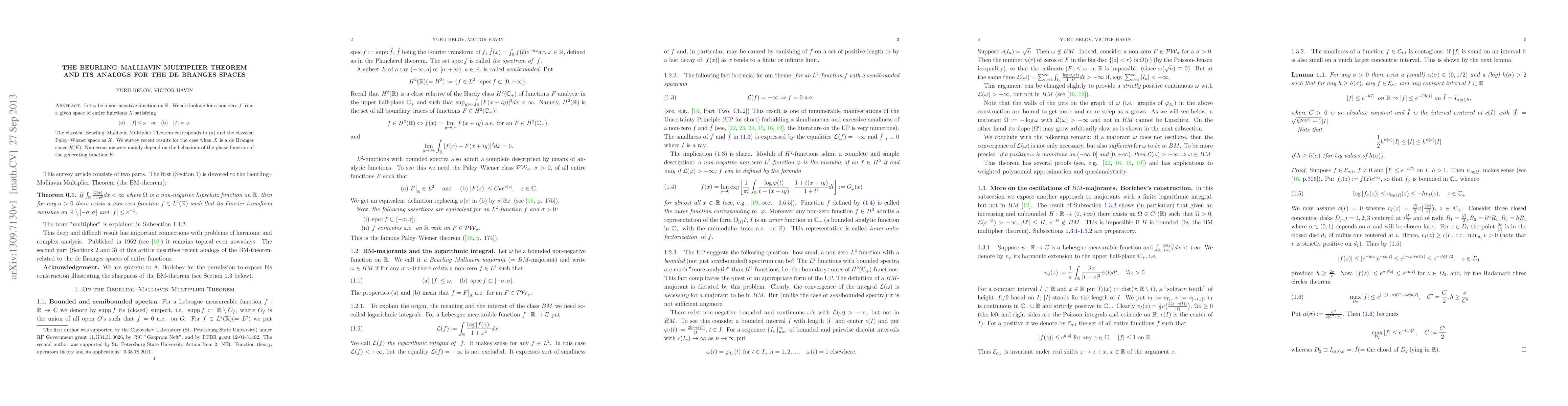 Let $\omega$ be a non-negative function on $\mathbb{R}$. We are looking for a non-zero $f$ from a given space of entire functions $X$ satisfying $$(a) \quad|f|\leq \omega\text{\quad or\quad(b)}\quad |f|\asymp\omega.$$ The classical Beurling--Malliavin Multiplier Theorem corresponds to $(a)$ and the classical Paley--Wiener space as $X$. We survey recent results for the case when $X$ is a de Branges space $\he$. Numerous answers mainly depend on the behaviour of the phase function of the generating function $E$.