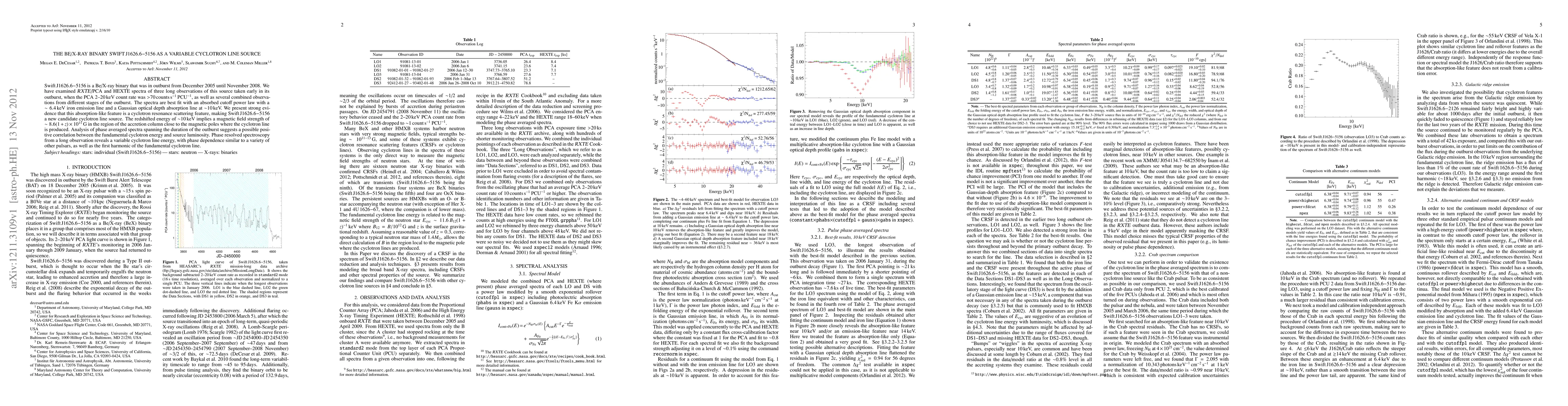 Swift J1626.6-5156, a Be/X-ray binary, exhibits a cyclotron resonance scattering feature at ~10 keV, indicating a magnetic field strength of ~8.6(1+z) x 10^11 G. The cyclotron line varies with phase, suggesting a correlation between its energy and the source's luminosity.