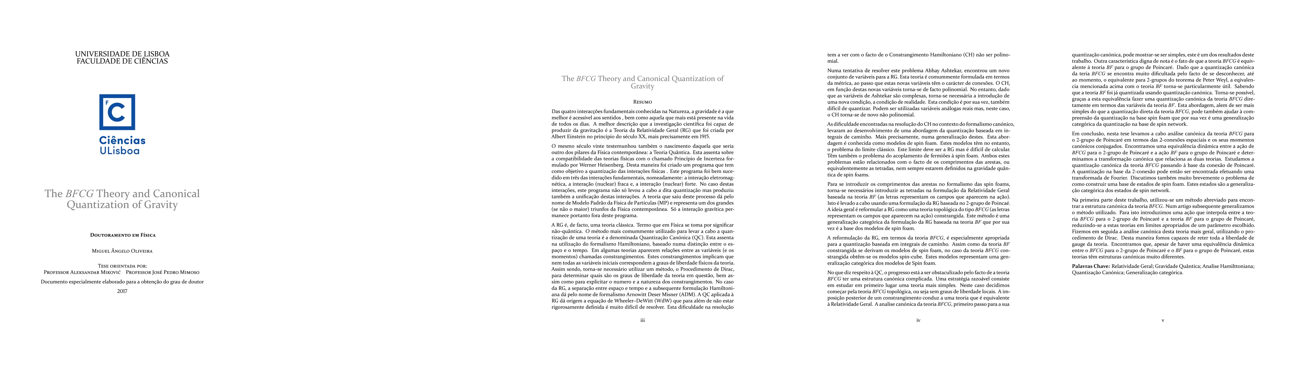 This is a PhD thesis on a categorical generalization of the $BF$ model called the $BFCG$ theory. The new theory is equivalent to General Relativity at the classical level but, at the quantum level, seeks to address the problem of the coupling of spinfoams to fermions and, the question of the semiclassical limit of a spinfoam model. Please see enclosed abstract for further details.
