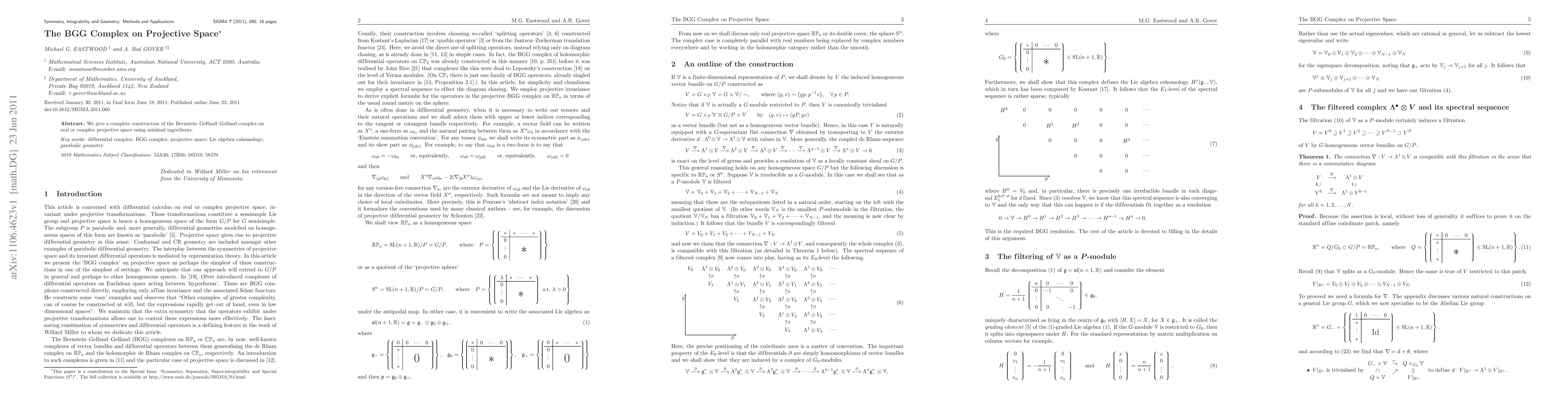 We give a complete construction of the Bernstein-Gelfand-Gelfand complex on real or complex projective space using minimal ingredients.