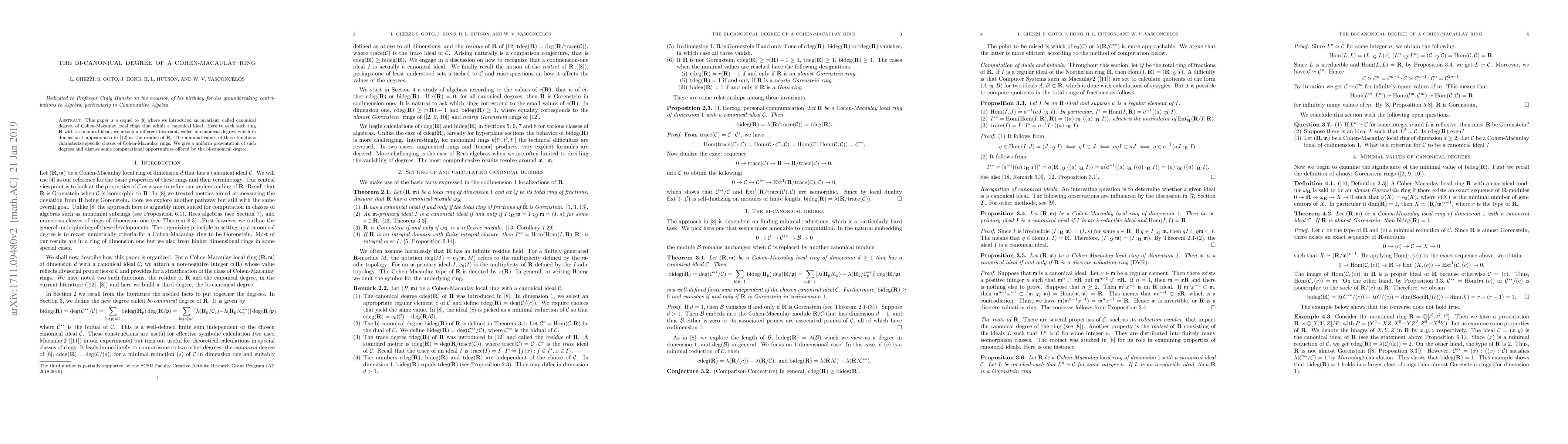 This paper introduces the bi-canonical degree, an invariant for Cohen-Macaulay rings with a canonical ideal, complementing the previously discussed canonical degree. The bi-canonical degree, also appearing in dimension 1 as residue of a ring, helps characterize specific ring classes and offers computational advantages, with minimal values indicating particular ring types.