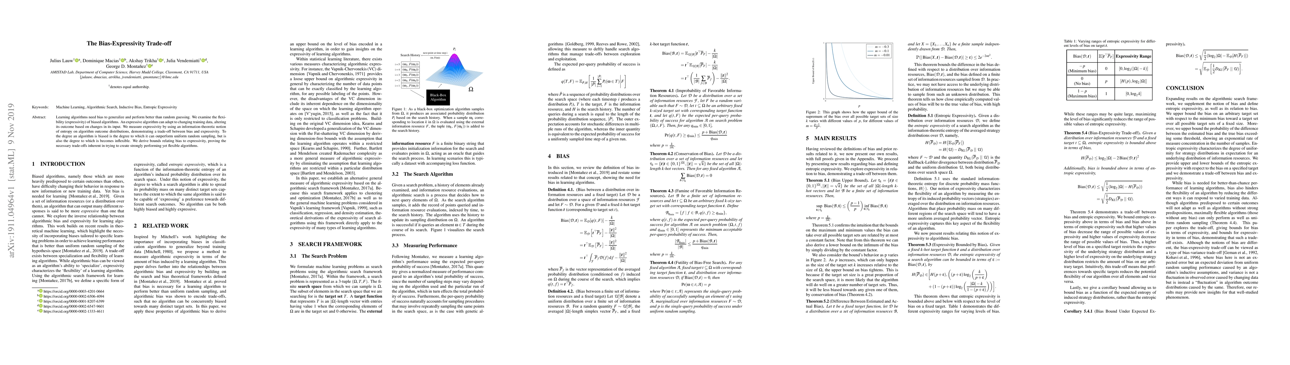 Learning algorithms need bias to generalize and perform better than random guessing. We examine the flexibility (expressivity) of biased algorithms. An expressive algorithm can adapt to changing training data, altering its outcome based on changes in its input. We measure expressivity by using an information-theoretic notion of entropy on algorithm outcome distributions, demonstrating a trade-off between bias and expressivity. To the degree an algorithm is biased is the degree to which it can outperform uniform random sampling, but is also the degree to which is becomes inflexible. We derive bounds relating bias to expressivity, proving the necessary trade-offs inherent in trying to create strongly performing yet flexible algorithms.