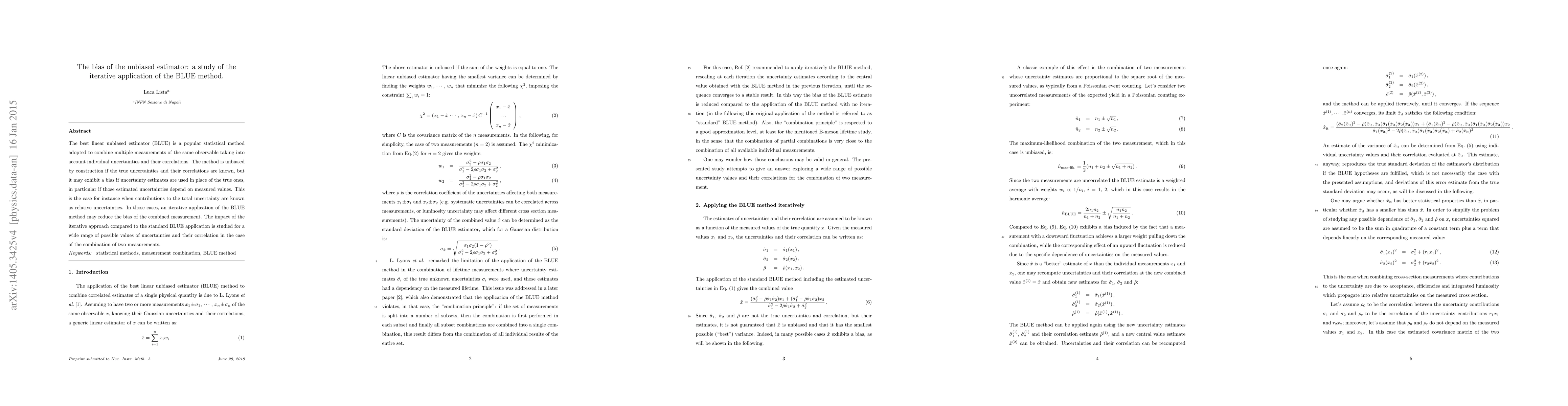 This paper investigates the bias in the best linear unbiased estimator (BLUE) when estimated uncertainties are used instead of true uncertainties, particularly when uncertainties are relative. It explores how iterative application of the BLUE method can reduce this bias, comparing it to the standard BLUE method across various uncertainty scenarios for combining two measurements.