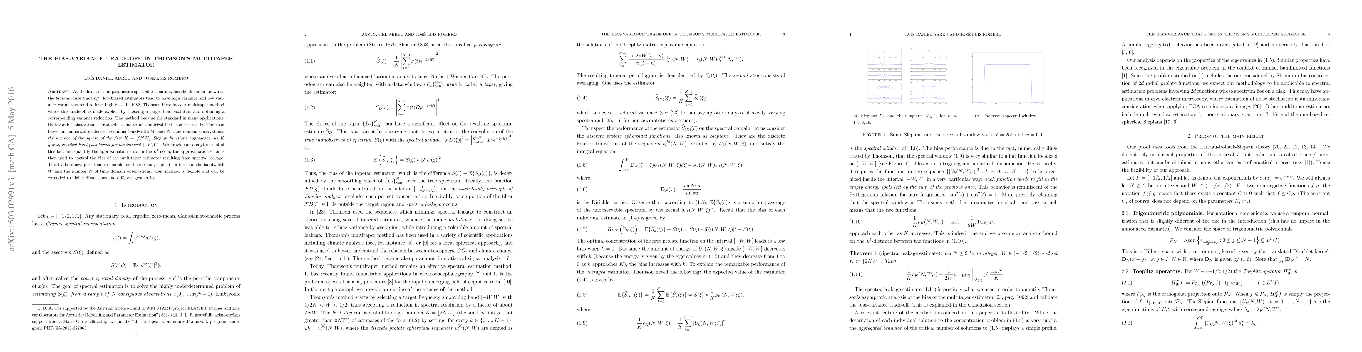 This work is novel as it provides a rigorous mathematical proof for Thomson's empirical observation, which was previously supported only by numerical evidence, and extends the applicability of the multitaper method with explicit bias-variance trade-off bounds.