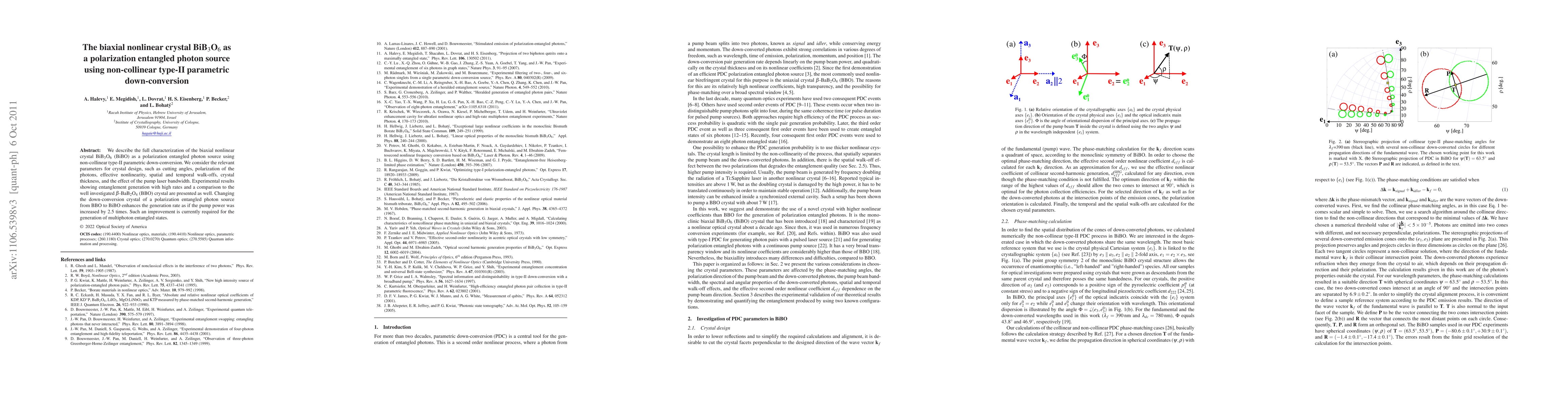 This paper characterizes BiB3O6 (BiBO) as a superior polarization entangled photon source via non-collinear type-II parametric down-conversion, demonstrating significant improvements over the traditional BBO crystal, with a threefold increase in generation rate. Experimental results highlight the enhanced efficiency and suitability for multiphoton entangled state generation.