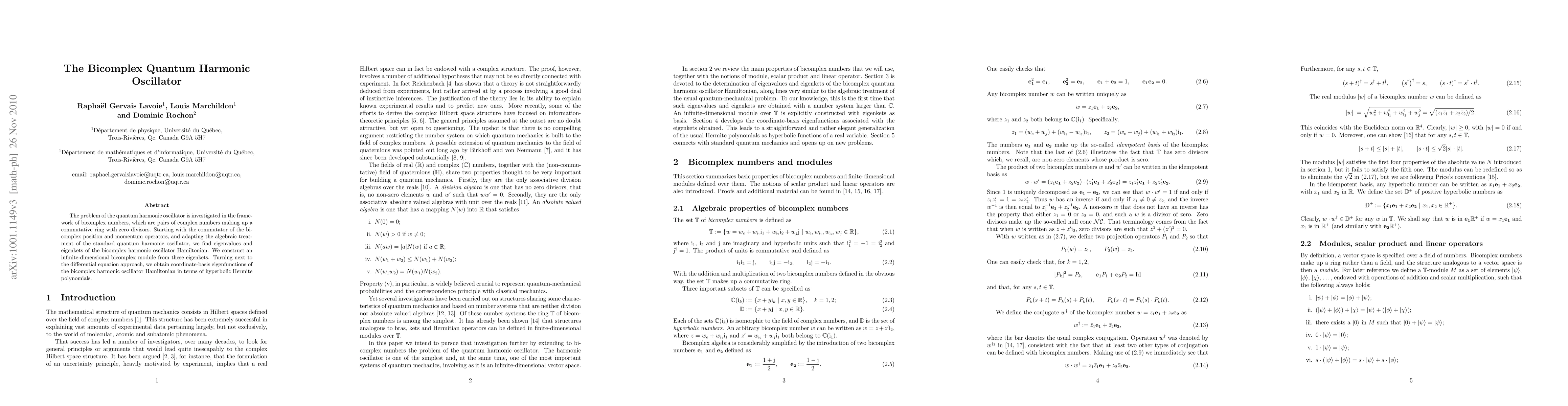 The paper explores the quantum harmonic oscillator using bicomplex numbers, deriving eigenvalues and eigenkets and constructing an infinite-dimensional module from them, while also employing hyperbolic Hermite polynomials for eigenfunctions.