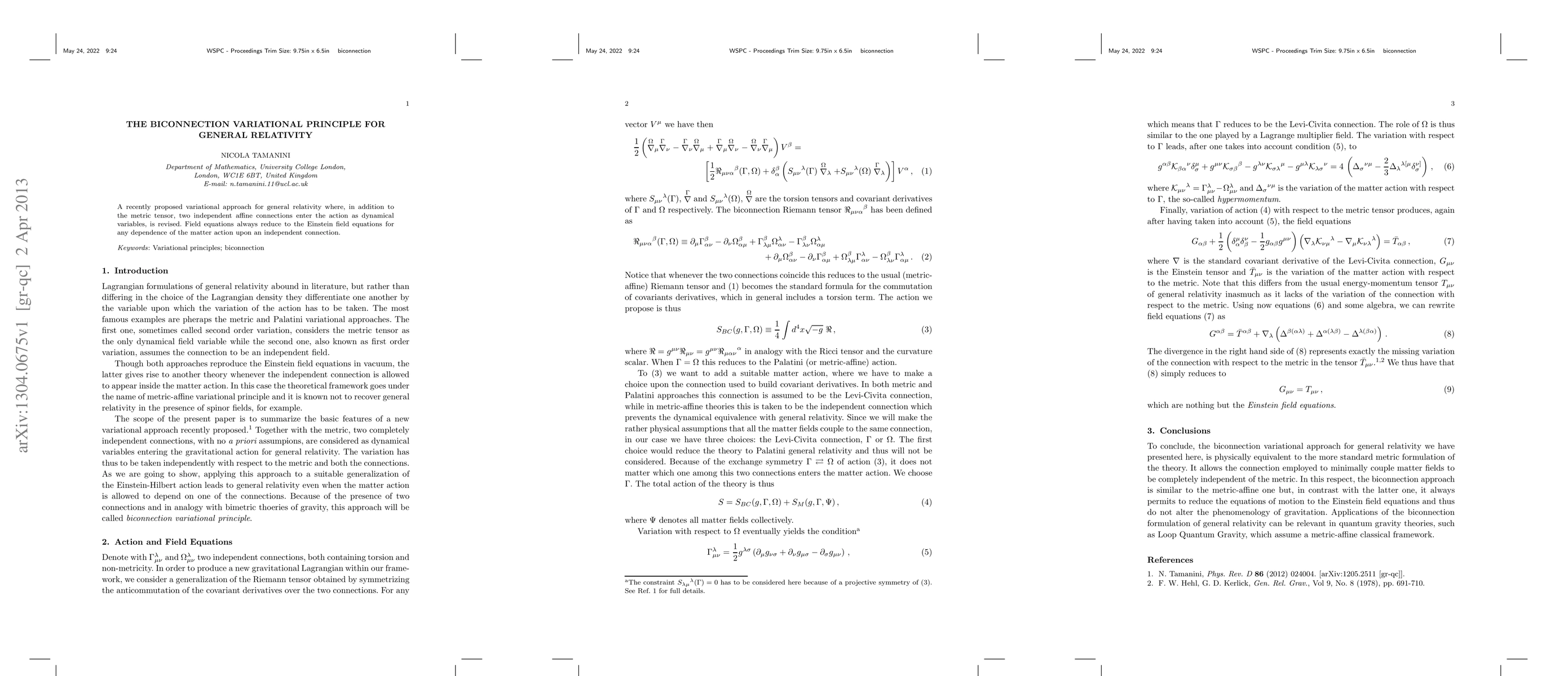 Summary: This paper revises a variational principle for general relativity incorporating two independent affine connections alongside the metric tensor, ensuring the field equations revert to Einstein's equations regardless of the matter action's dependence on the connections.