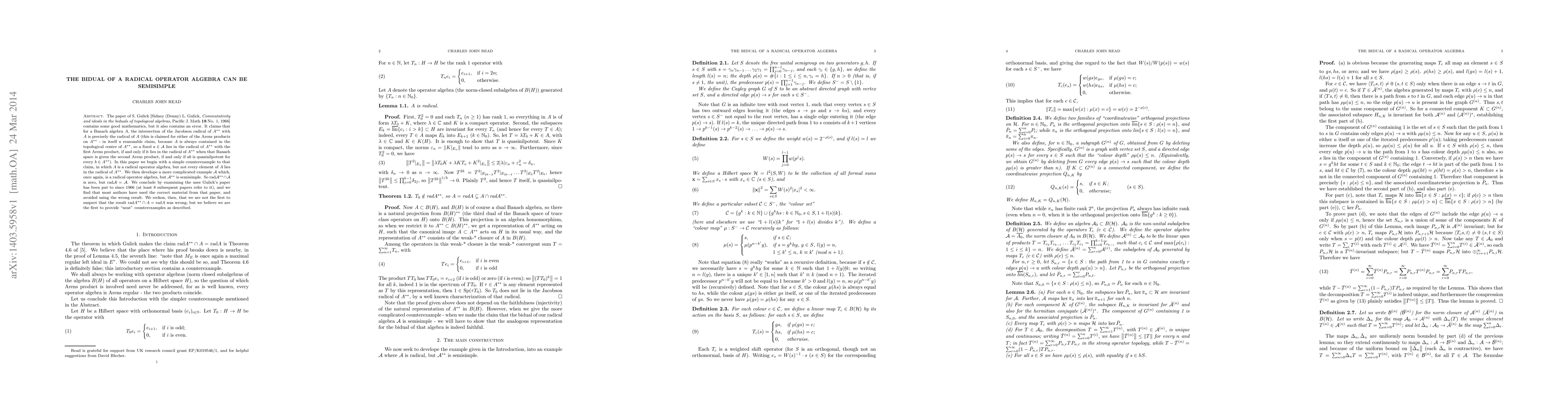 Research paper provides counterexamples to a claim in Gulick's 1966 paper that rad A** ∩ A = rad A for radical operator algebras A, showing the intersection can be zero even when A is semisimple.
