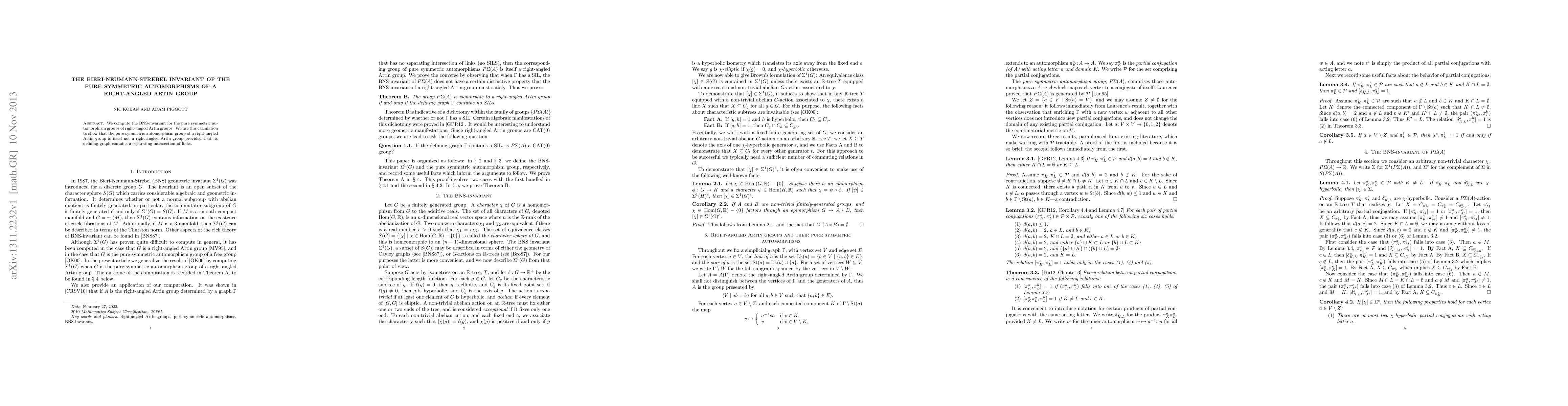This paper computes the Bieri-Neumann-Strebel invariant for pure symmetric automorphism groups of right-angled Artin groups and demonstrates that these groups are not themselves right-angled Artin groups when their defining graph features a separating intersection of links.