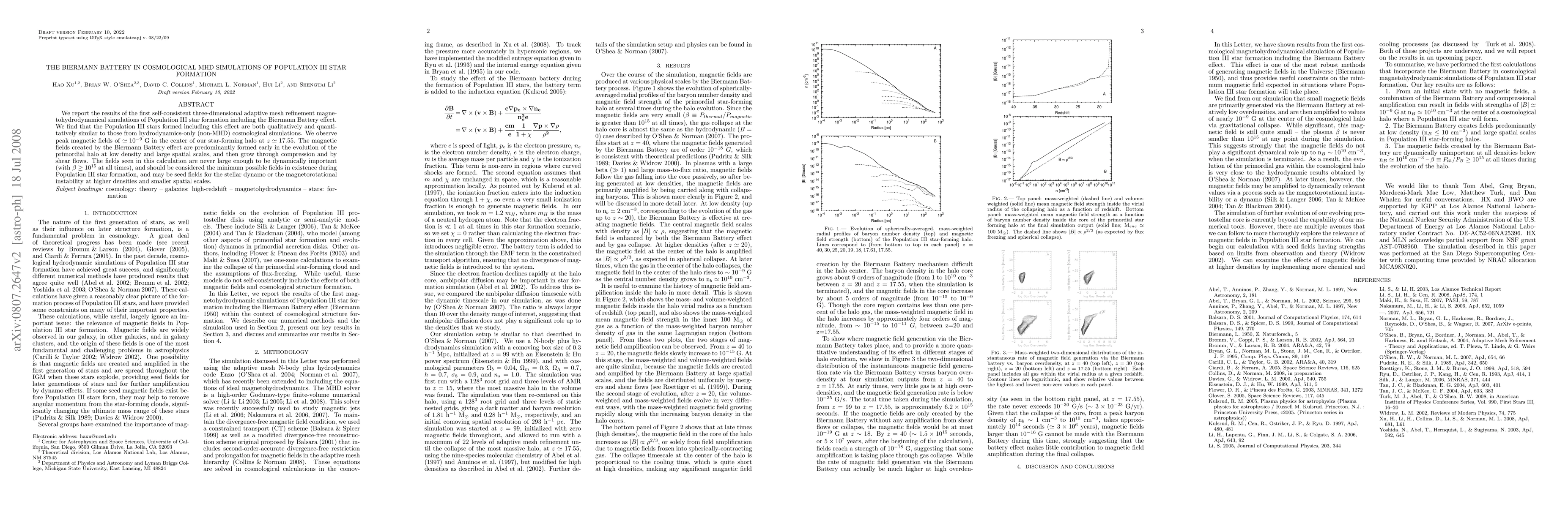 The study utilized the adaptive mesh refinement magnetohydrodynamical code Enzo to simulate Population III star formation, incorporating the Biermann Battery effect within cosmological structure formation context.
