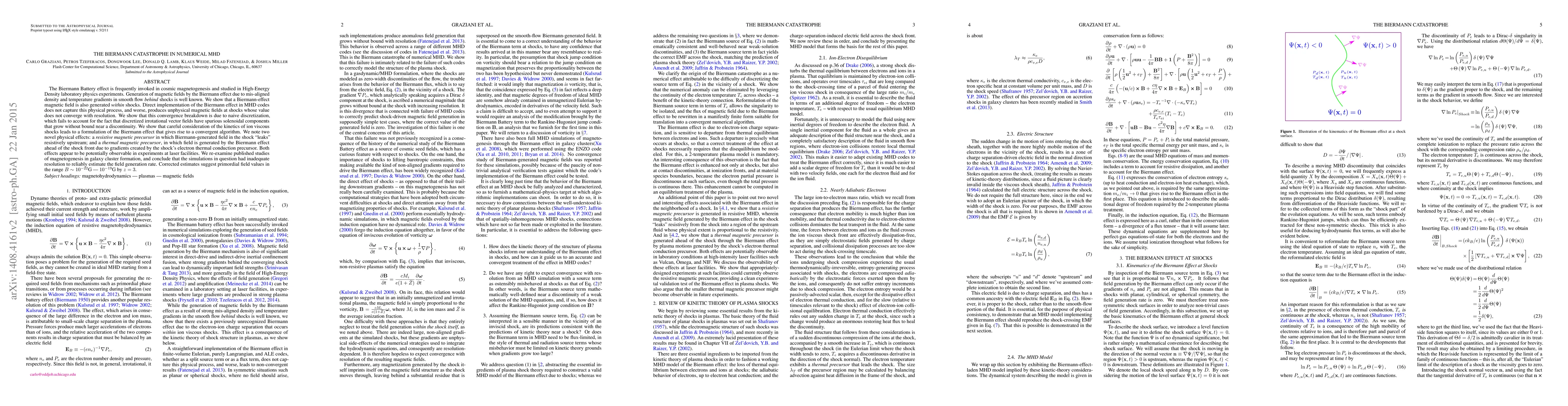 The Biermann Battery effect is frequently invoked in cosmic magnetogenesis and studied in High-Energy Density laboratory physics experiments. Generation of magnetic fields by the Biermann effect due to mis-aligned density and temperature gradients in smooth flow behind shocks is well known. We show that a Biermann-effect magnetic field is also generated within shocks. Direct implementation of the Biermann effect in MHD codes does not capture this physical process, and worse, produces unphysical magnetic fields at shocks whose value does not converge with resolution. We show that this convergence breakdown is due to naive discretization, which fails to account for the fact that discretized irrotational vector fields have spurious solenoidal components that grow without bound near a discontinuity. We show that careful consideration of the kinetics of ion viscous shocks leads to a formulation of the Biermann effect that gives rise to a convergent algorithm. We note two novel physical effects: a resistive magnetic precursor in which Biermann-generated field in the shock "leaks" resistively upstream; and a thermal magnetic precursor, in which field is generated by the Biermann effect ahead of the shock front due to gradients created by the shock's electron thermal conduction precursor. Both effects appear to be potentially observable in experiments at laser facilities. We re-examine published studies of magnetogenesis in galaxy cluster formation, and conclude that the simulations in question had inadequate resolution to reliably estimate the field generation rate. Corrected estimates suggest primordial field values in the range $B\sim 10^{-22}$G --- $10^{-19}$G by $z=3$.