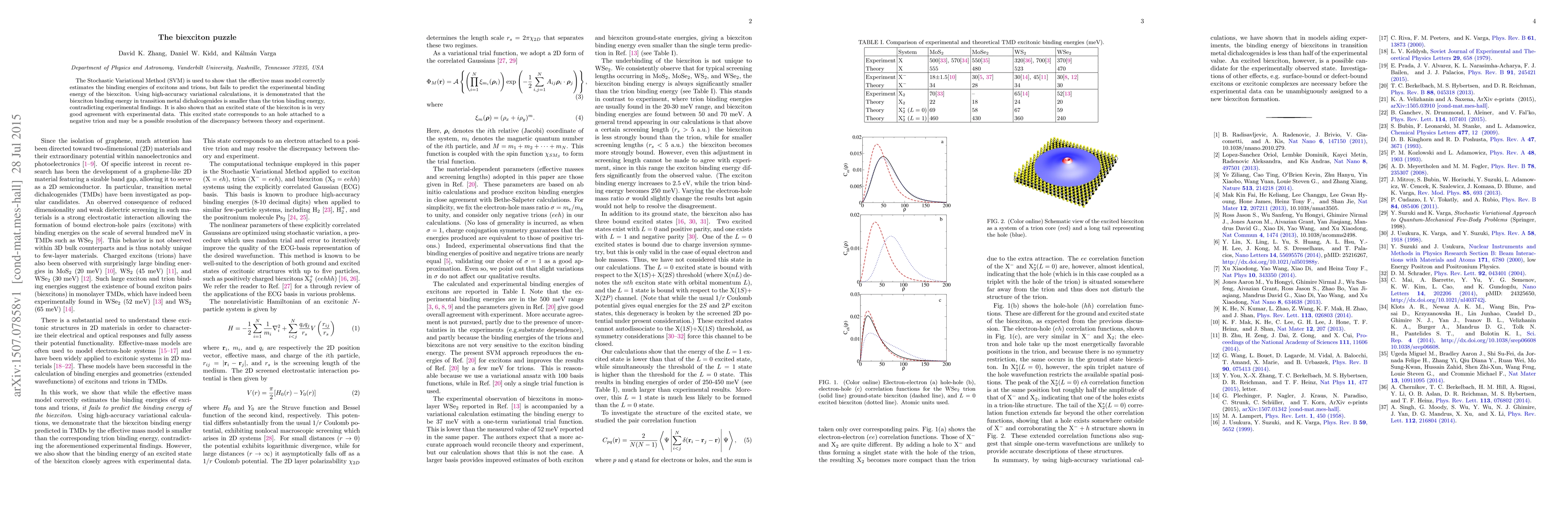 The Stochastic Variational Method (SVM) is used to show that the effective mass model correctly estimates the binding energies of excitons and trions, but fails to predict the experimental binding energy of the biexciton. Using high-accuracy variational calculations, it is demonstrated that the biexciton binding energy in transition metal dichalcogenides is smaller than the trion binding energy, contradicting experimental findings. It is also shown that an excited state of the biexciton is in very good agreement with experimental data. This excited state corresponds to an hole attached to a negative trion and may be a possible resolution of the discrepancy between theory and experiment.