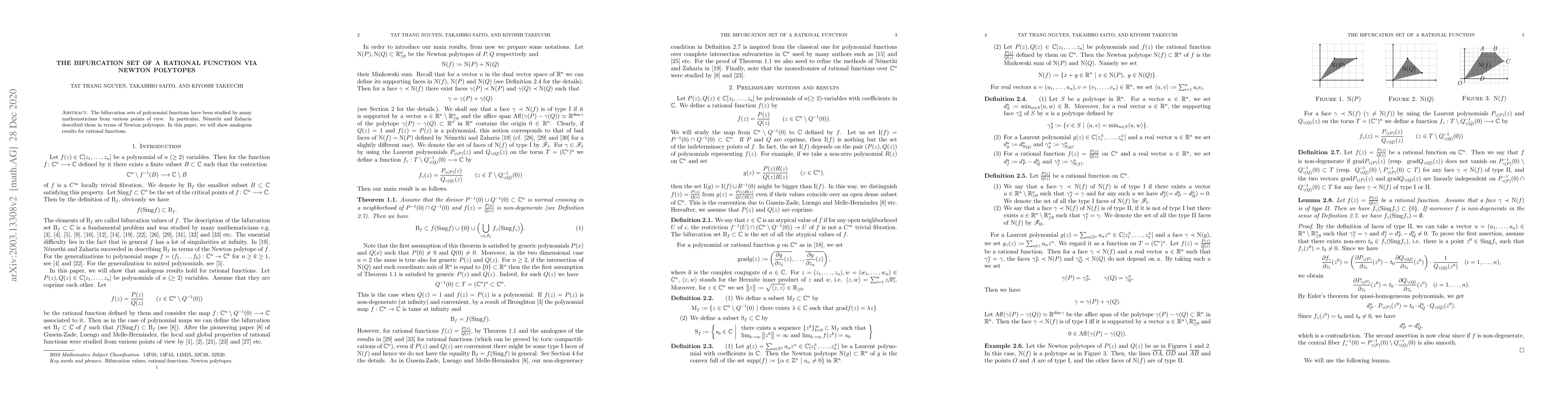 This paper investigates the bifurcation sets of rational functions using the framework of Newton polytopes, extending previous studies on polynomial functions by Némethi and Zaharia. The results reveal analogous properties between rational and polynomial functions in the context of bifurcation sets.
