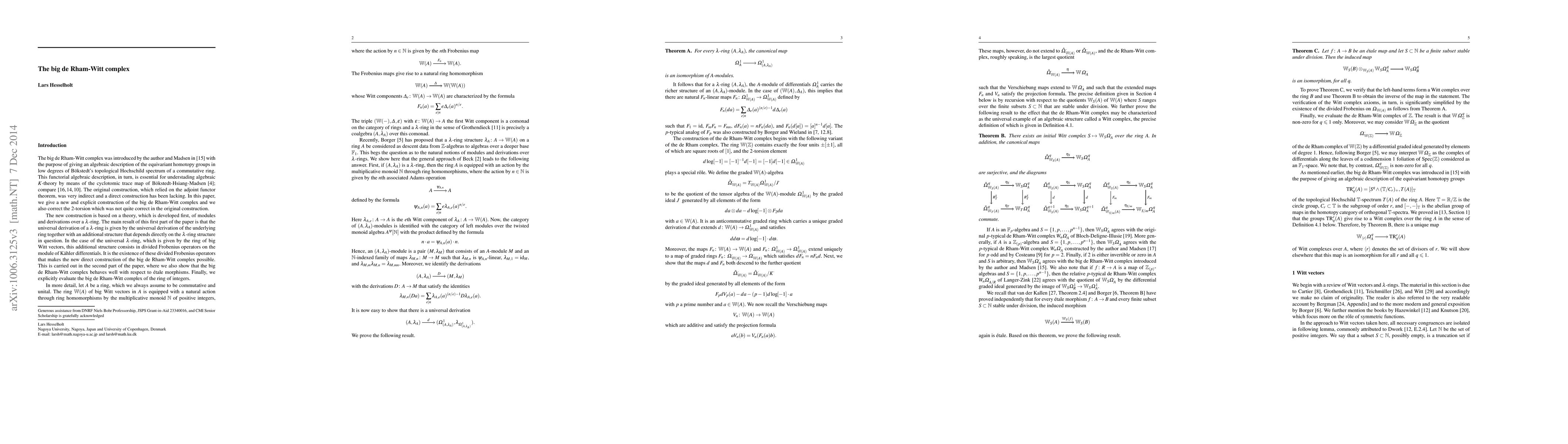 This paper provides a direct construction of the multi-prime big de Rham-Witt complex for any commutative ring, correcting previous errors and using modules and derivations over a lambda-ring. It introduces divided Frobenius operators that facilitate the new construction and evaluates the complex for the ring of integers.