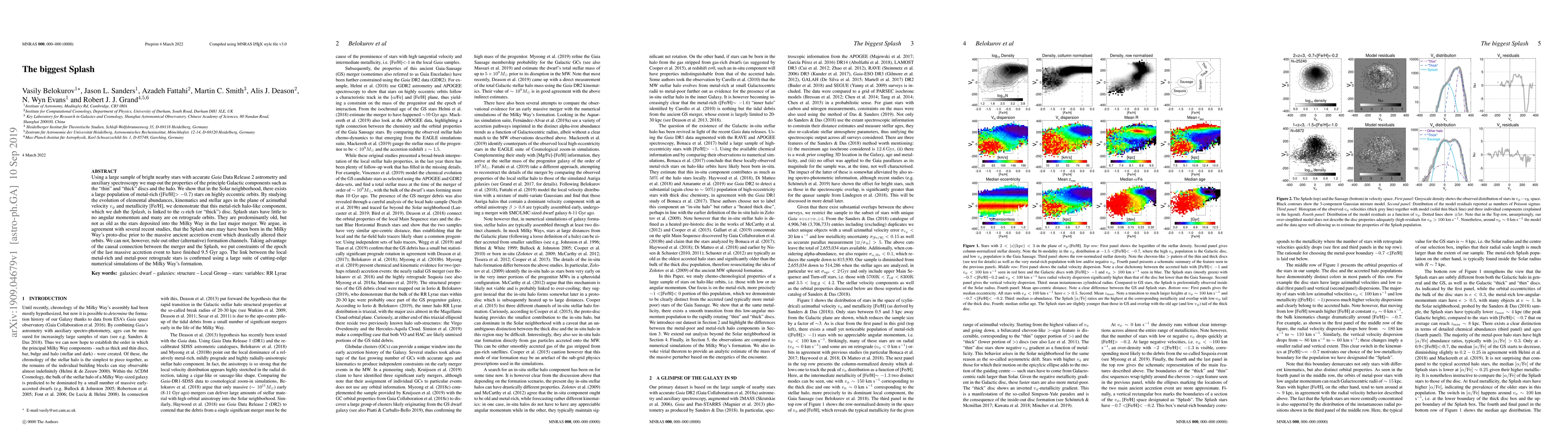 Using a large sample of bright nearby stars with accurate Gaia Data Release 2 astrometry and auxiliary spectroscopy we map out the properties of the principle Galactic components such as the "thin" and "thick" discs and the halo. We show that in the Solar neighborhood, there exists a large population of metal-rich ([Fe/H]>-0.7) stars on highly eccentric orbits. By studying the evolution of elemental abundances, kinematics and stellar ages in the plane of azimuthal velocity v_phi and metallicity [Fe/H], we demonstrate that this metal-rich halo-like component, which we dub the Splash, is linked to the alpha-rich (or "thick") disc. Splash stars have little to no angular momentum and many are on retrograde orbits. They are predominantly old, but not as old as the stars deposited into the Milky Way in the last major merger. We argue, in agreement with several recent studies, that the Splash stars may have been born in the Milky Way's proto-disc prior to the massive ancient accretion event which drastically altered their orbits. We can not, however, rule out other (alternative) formation channels. Taking advantage of the causal connection between the merger and the Splash, we put constraints of the epoch of the last massive accretion event to have finished 9.5 Gyr ago. The link between the local metal-rich and metal-poor retrograde stars is confirmed using a large suite of cutting-edge numerical simulations of the Milky Way's formation.