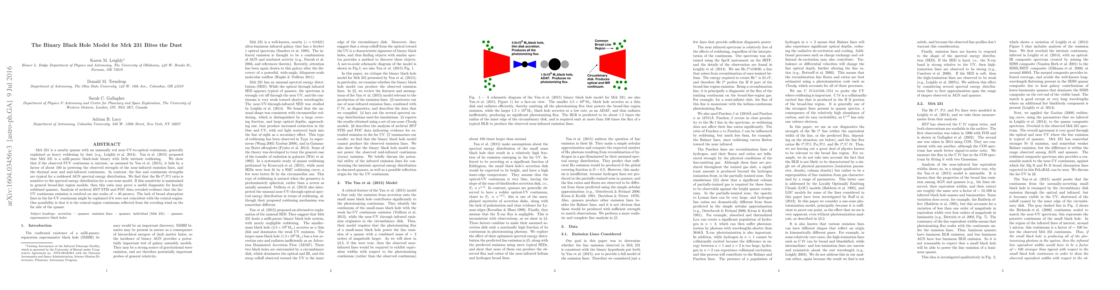 This paper refutes the binary black hole model for Mrk 231, showing that the observed FUV continuum cannot power the near-infrared emission lines and continuum, supporting instead a heavily reddened AGN model. The HeI*/Pbeta ratio may serve as a diagnostic for such quasars.