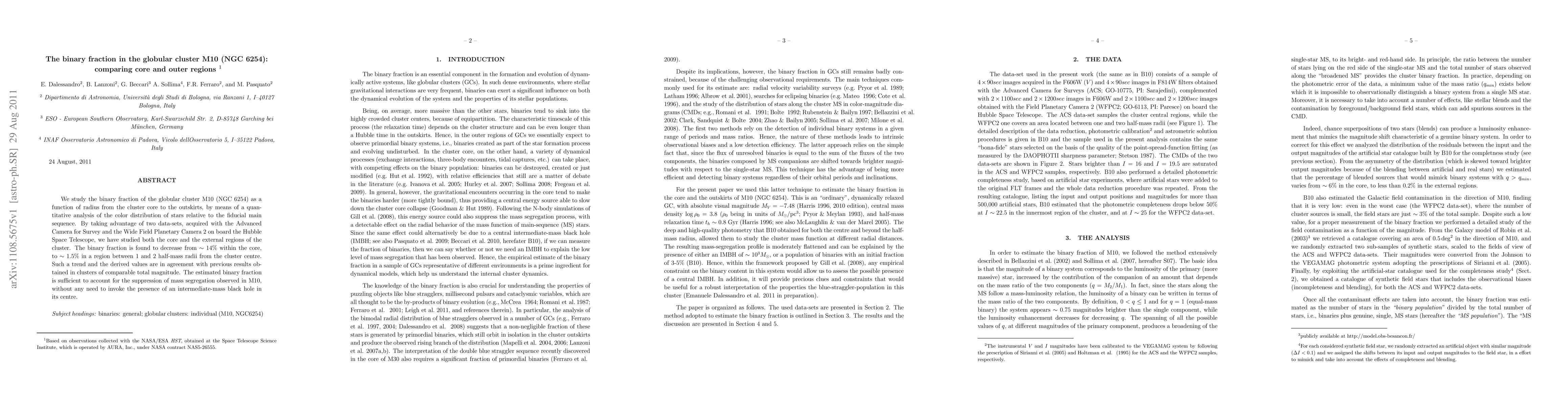 This study investigates the binary fraction in the globular cluster M10 (NGC 6254) across different radii, finding a decrease from 14% in the core to 1.5% in outer regions. The results suggest that the binary fraction can account for observed mass segregation without requiring an intermediate-mass black hole.