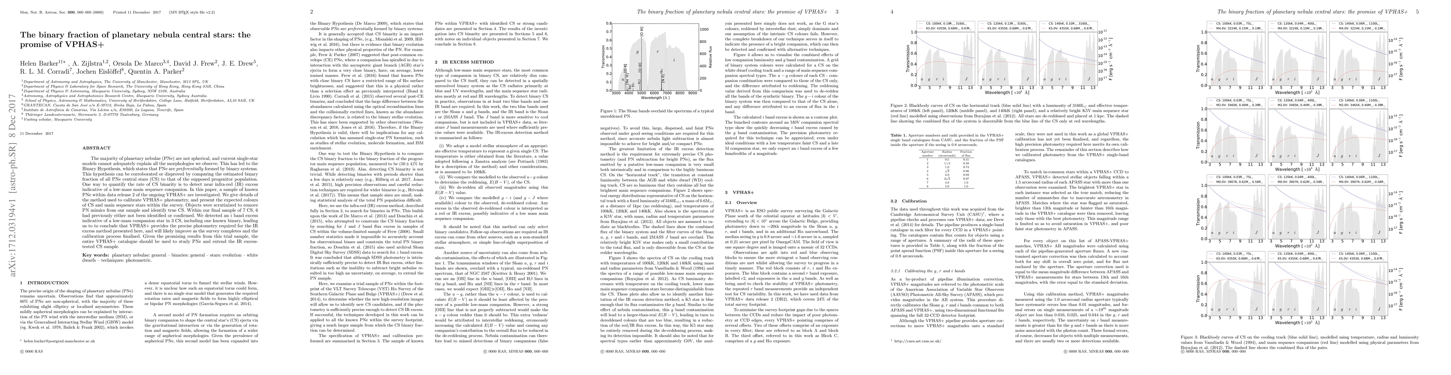 A study using VPHAS+ data found that 3 out of 7 planetary nebula central stars exhibited IR excess indicative of a low-mass companion star, suggesting a binary fraction in PNe central stars.