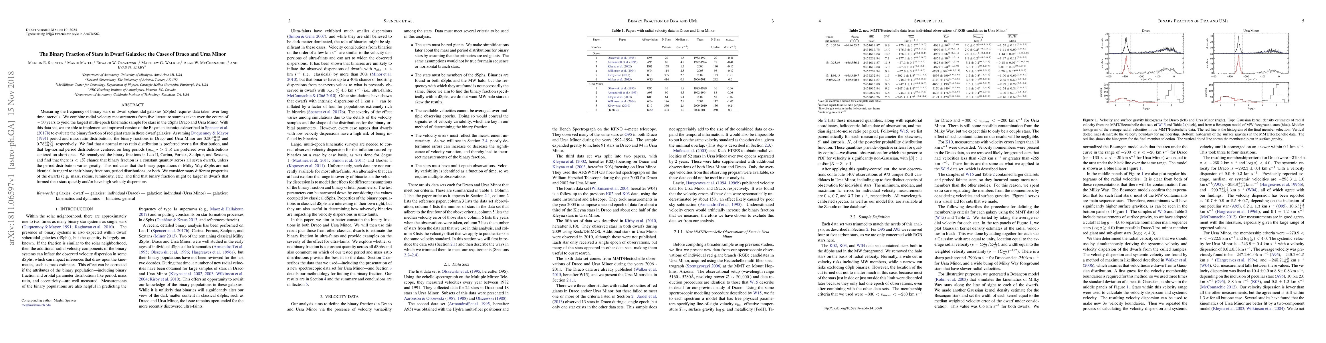 This study measures the binary star fractions in the dwarf galaxies Draco and Ursa Minor using long-term radial velocity data, finding binary fractions of 50% and 78%, respectively. The research suggests that binary populations in these galaxies differ in their period and mass distributions.