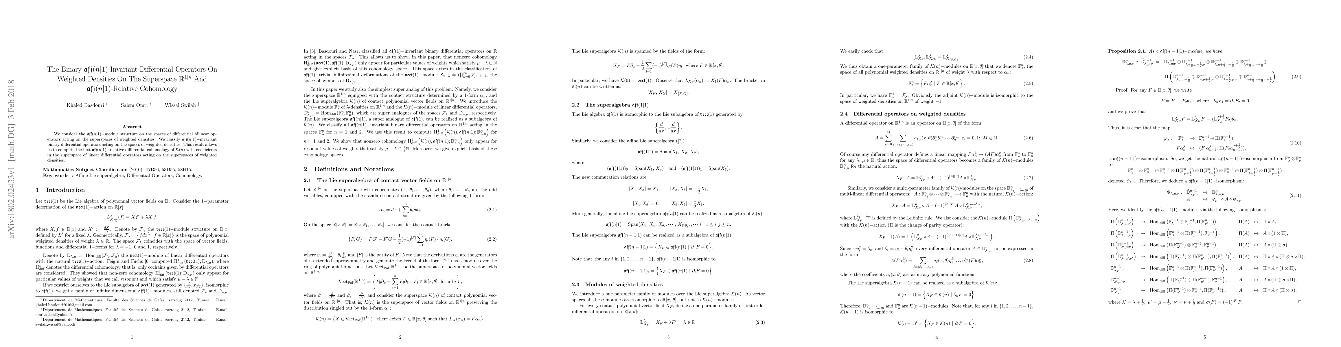 This paper classifies $\mathfrak{aff}(n|1)$-invariant binary differential operators on weighted densities on the superspace $\mathbb{R}^{1|n}$. It also computes the first $\mathfrak{aff}(n|1)$-relative differential cohomology of $\mathcal{K}(n)$ using these operators.