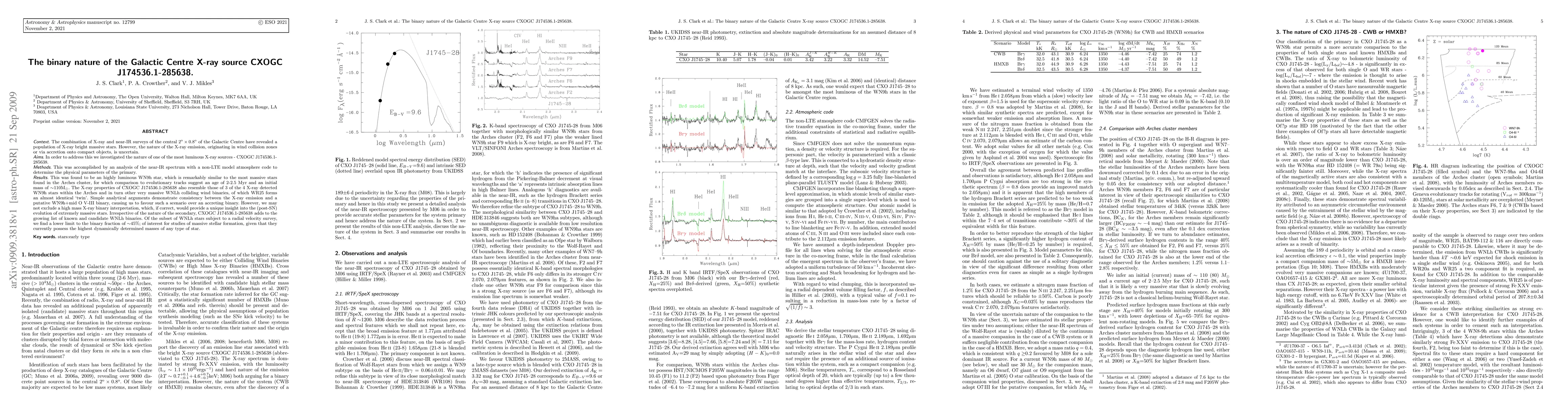 The Galactic Centre X-ray source CXOGC J174536.1-285638 is identified as a highly luminous WN9h star with an age of 2-2.5Myr and initial mass of ~110Msun, offering insights into the evolution of massive stars.