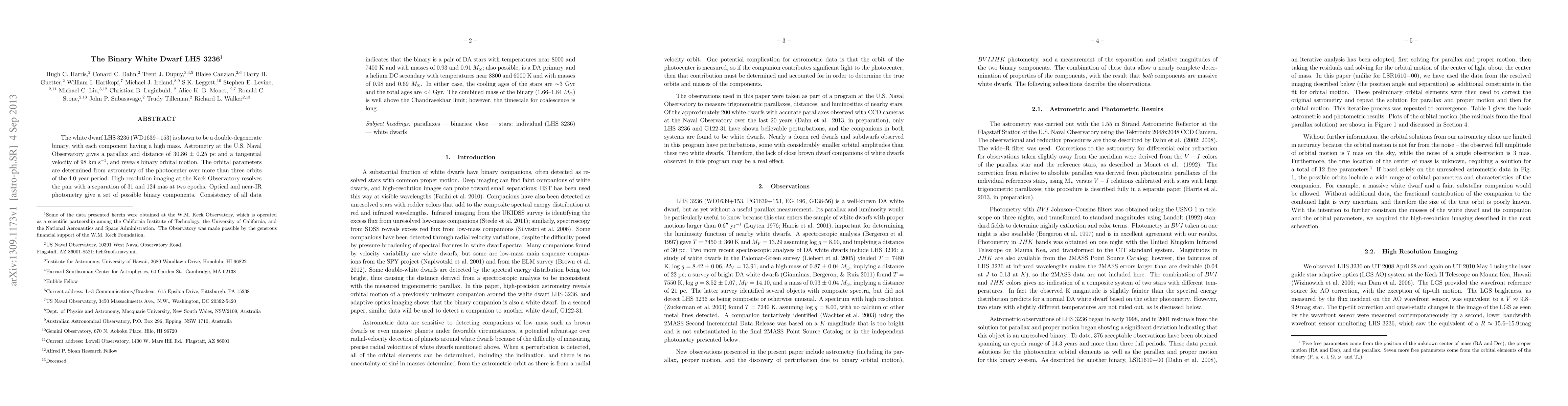 The white dwarf LHS 3236 (WD1639+153) is shown to be a double-degenerate binary, with each component having a high mass. Astrometry at the U.S. Naval Observatory gives a parallax and distance of 30.86 +/- 0.25 pc and a tangential velocity of 98 km/s, and reveals binary orbital motion. The orbital parameters are determined from astrometry of the photocenter over more than three orbits of the 4.0-year period. High-resolution imaging at the Keck Observatory resolves the pair with a separation of 31 and 124 mas at two epochs. Optical and near-IR photometry give a set of possible binary components. Consistency of all data indicates that the binary is a pair of DA stars with temperatures near 8000 and 7400 K and with masses of 0.93 and 0.91 M_solar; also possible, is a DA primary and a helium DC secondary with temperatures near 8800 and 6000 K and with masses of 0.98 and 0.69 M_solar. In either case, the cooling ages of the stars are ~3 Gyr and the total ages are <4 Gyr. The combined mass of the binary (1.66--1.84 M_solar) is well above the Chandrasekhar limit; however, the timescale for coalescence is long.
