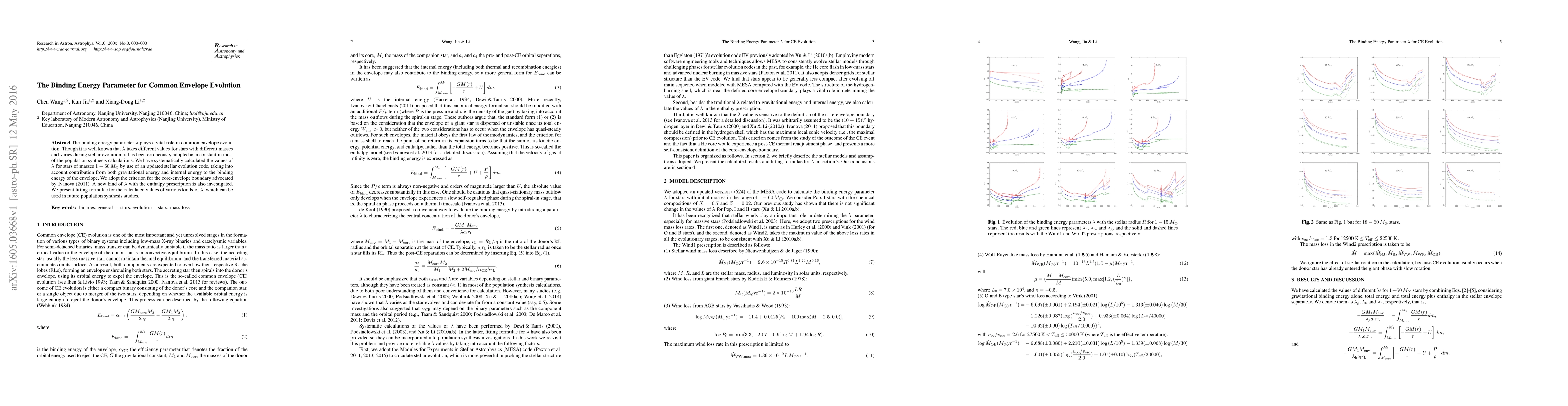 This paper systematically calculates the binding energy parameter $\lambda$ for stars with masses ranging from $1-60\,M_{\odot}$, correcting previous assumptions of its constancy. The study provides fitting formulae for $\lambda$ based on updated stellar evolution models, which can enhance future population synthesis studies.