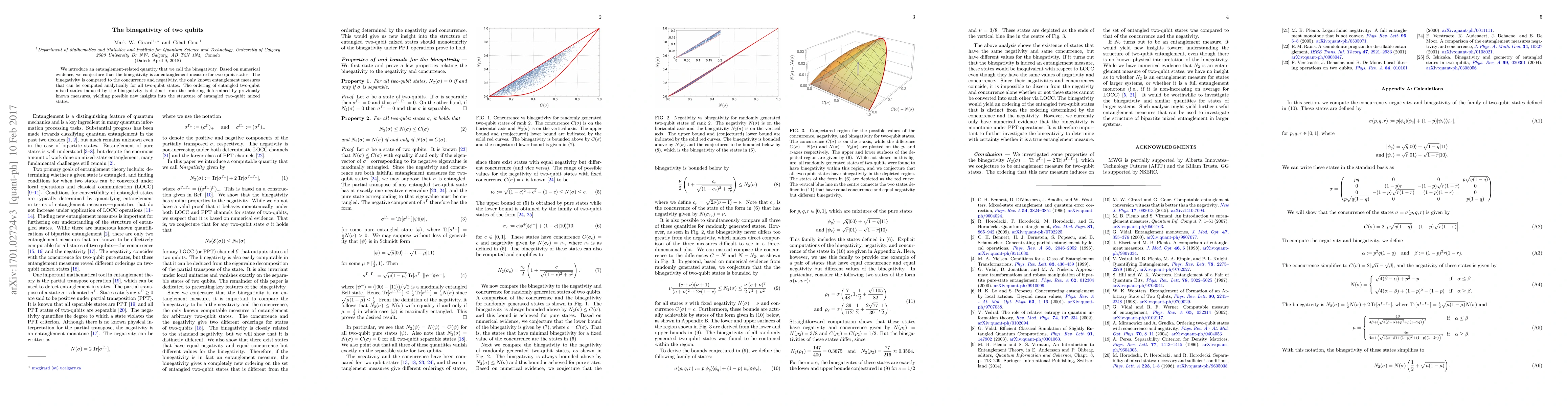 The paper introduces a new entanglement measure called binegativity for two-qubit states, suggesting it may offer a distinct ordering of entangled states compared to existing measures like concurrence and negativity. Numerical evidence supports the conjecture that binegativity could provide new insights into the structure of entangled two-qubit mixed states.