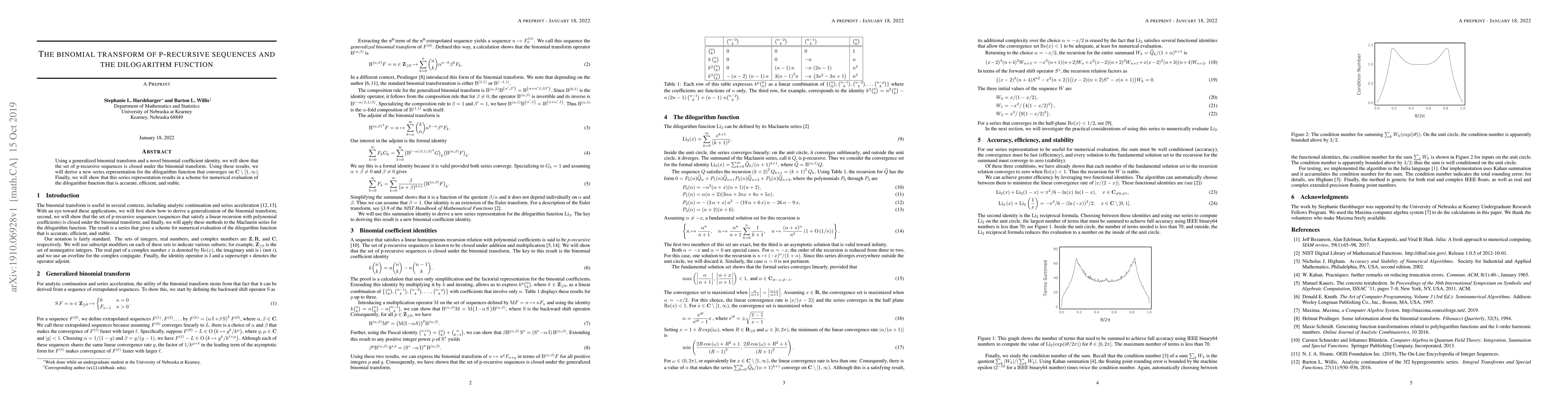 Using a generalized binomial transform and a novel binomial coefficient identity, we will show that the set of p-recursive sequences is closed under the binomial transform. Using these results, we will derive a new series representation for the dilogarithm function that converges on $\mathbf{C} \, \backslash \, [1,\infty)$. Finally, we will show that this series representation results in a scheme for numerical evaluation of the dilogarithm function that is accurate, efficient, and stable.