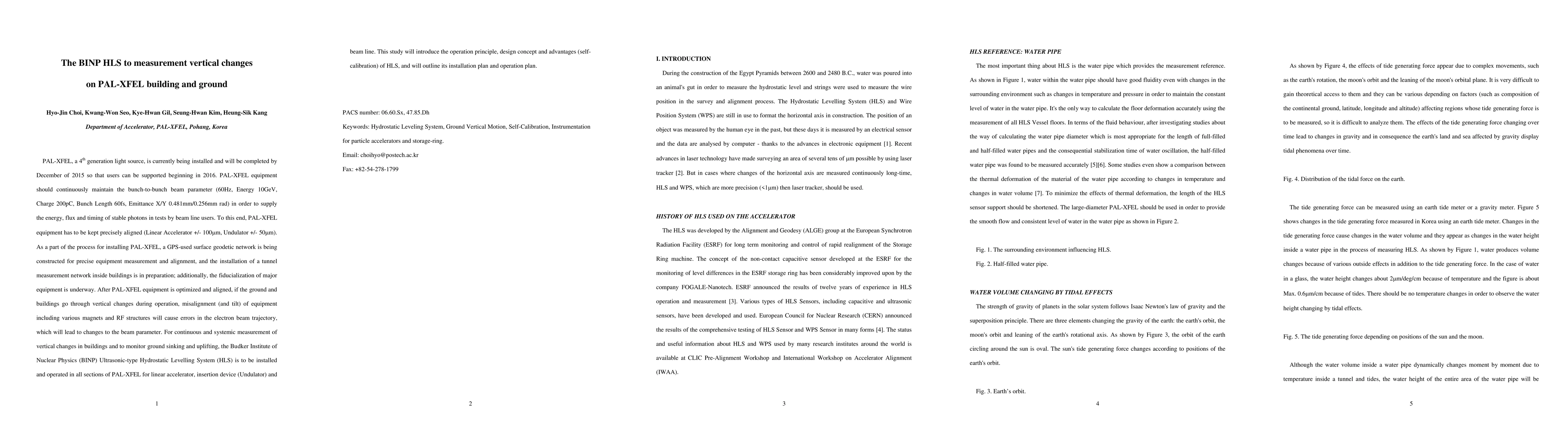 This paper discusses the installation of the Budker Institute of Nuclear Physics (BINP) Ultrasonic-type Hydrostatic Levelling System (HLS) to monitor vertical changes in the PAL-XFEL building and ground. The PAL-XFEL, a 4th generation light source, requires precise alignment to maintain beam parameters, and HLS will be used to detect any vertical shifts that could cause misalignment and errors in the electron beam trajectory.